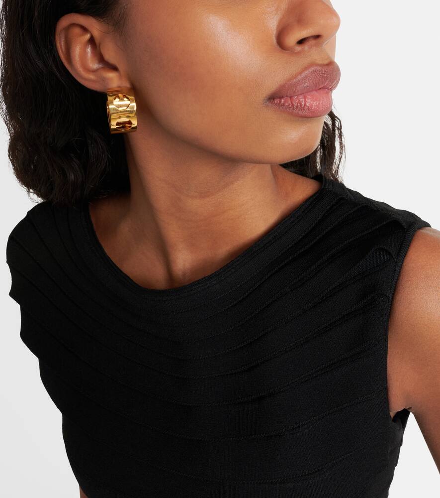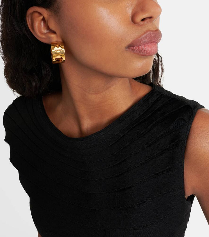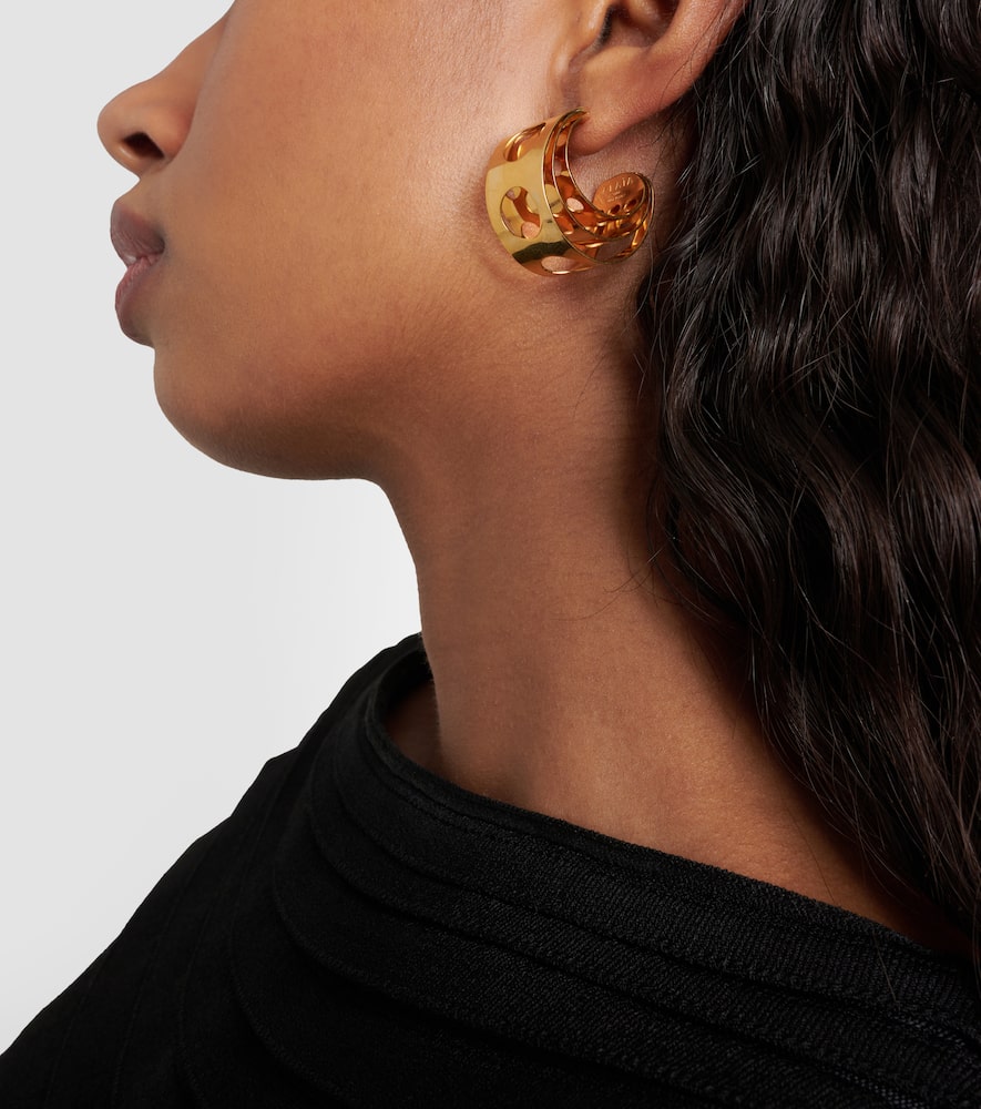 These Alaïa Cutout hoop earrings by Alaïa combine modern design with refined craftsmanship. Made in Italy from brass, they feature a gold finish with a secure pin fastening for pierced ears.