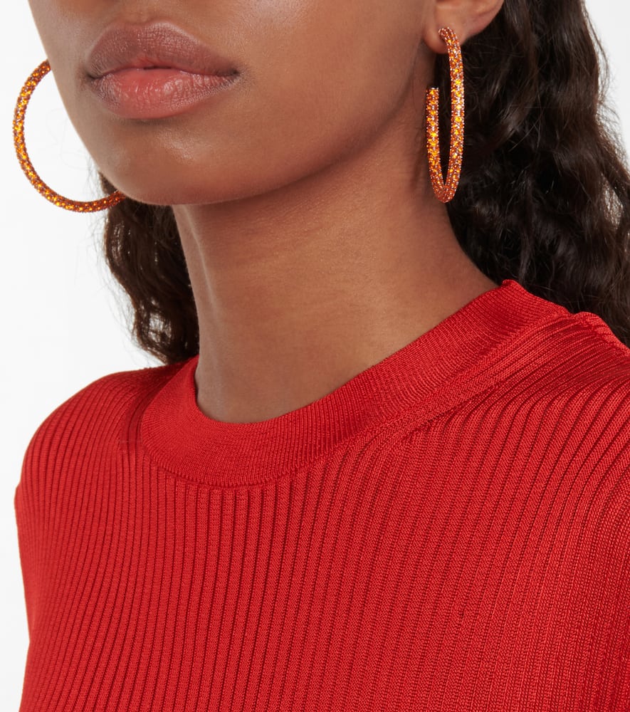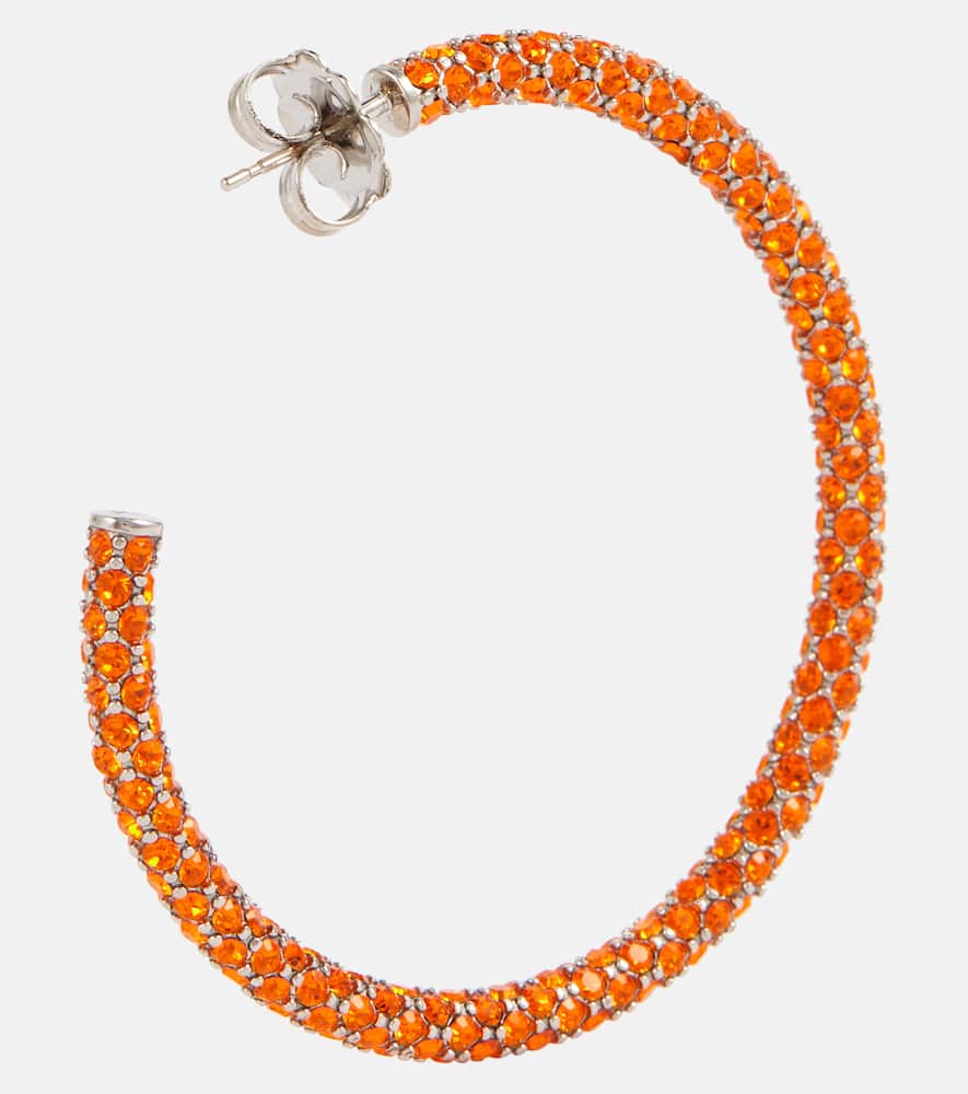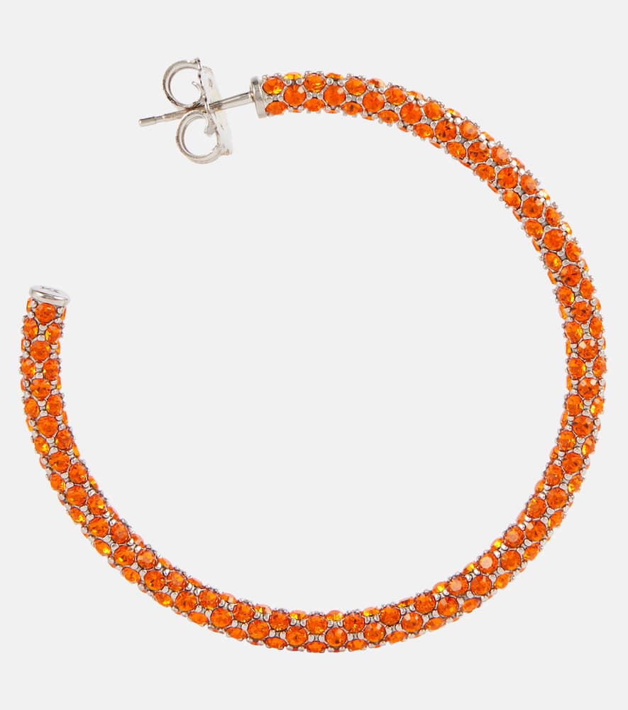 These Amina Muaddi Cameron large hoop earrings by Amina Muaddi are bold and radiant. Crafted from 65% brass and 35% glass in Italy, they feature a sun crystal finish with butterfly-back fastening for secure wear on pierced ears.