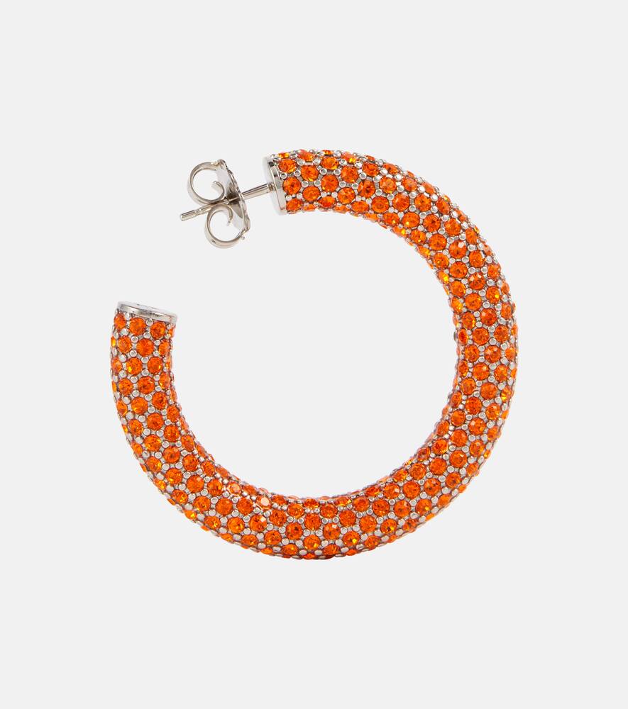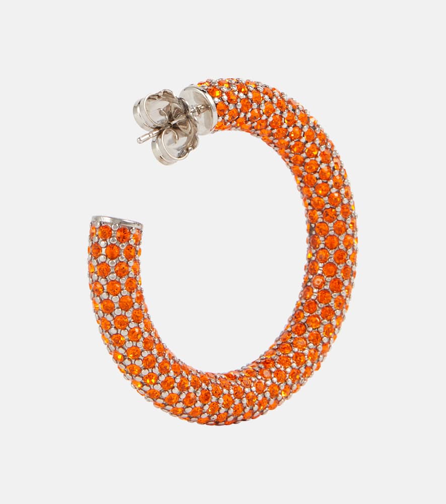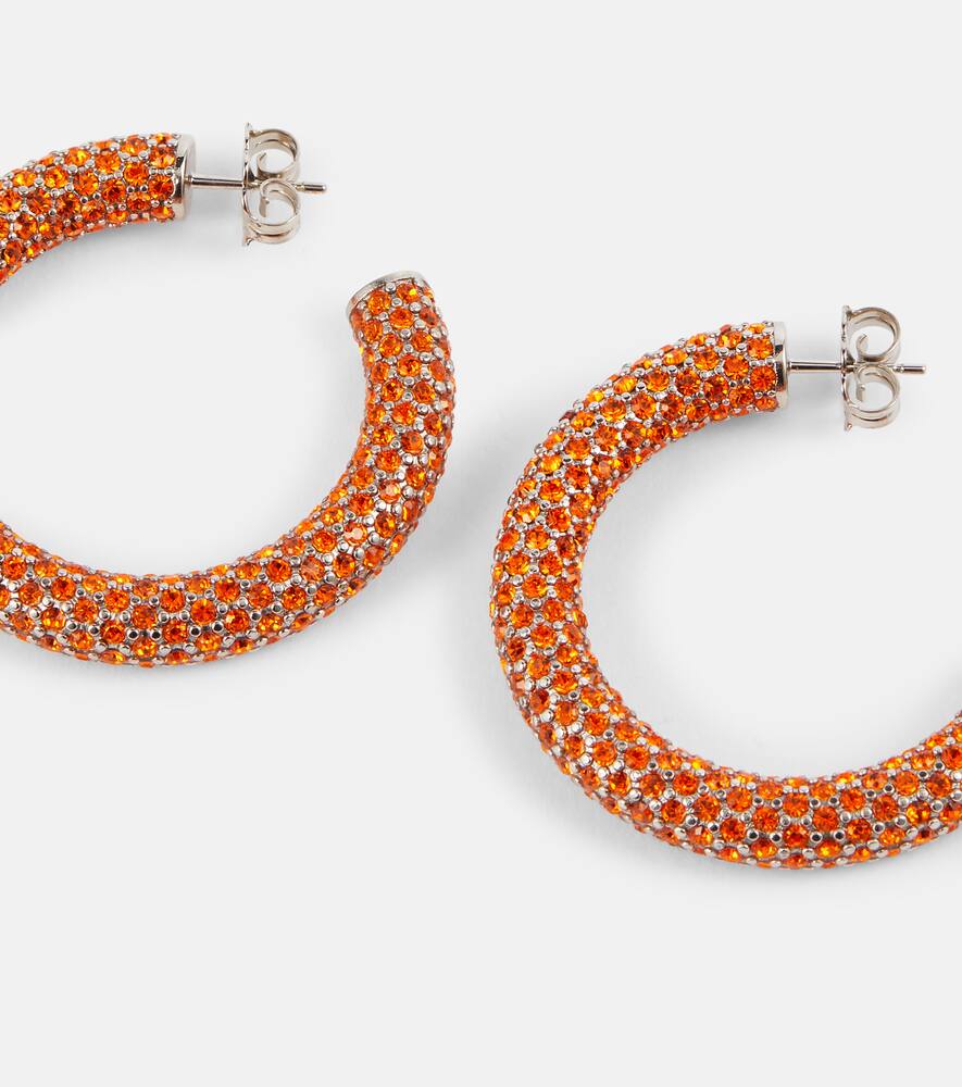 These Amina Muaddi Cameron Medium hoop earrings by Amina Muaddi are versatile, sparkling essentials. Made in Italy from 70% brass and 30% strass crystals, the Silver Base / Sun finish and butterfly-back fastening ensure secure wear for pierced ears.