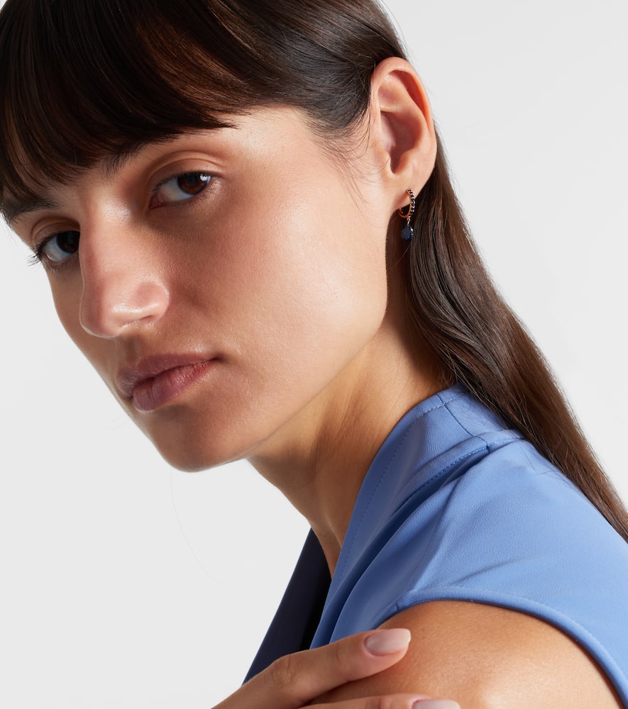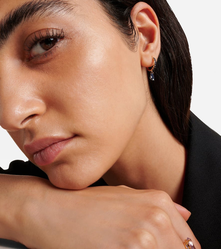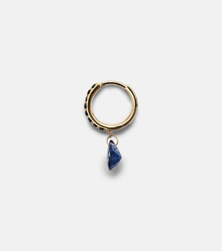 This Persée 18kt gold single earring with sapphire and topaz by Persée offers a playful yet refined look. Crafted in 18kt yellow gold in Belgium, it features a pear-shaped sapphire and round-cut topaz in prong setting with hinge closure for pierced ears.