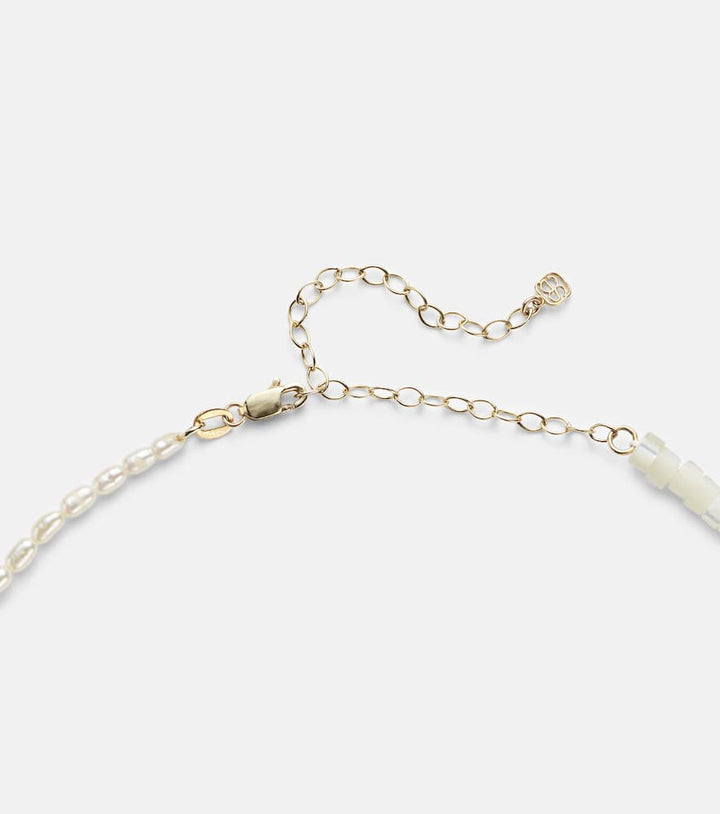 Handcrafted in 14kt yellow gold with 0.06ct diamonds and mother-of-pearl (Pinctada maxima, Philippines, wild-captured), made in Hong Kong. Adjustable length 30.5–37.5cm, pendant length 16mm, pendant width 9mm. Maximum width 4mm. Lobster-clasp fastening. Designer color name: YG Pearl.