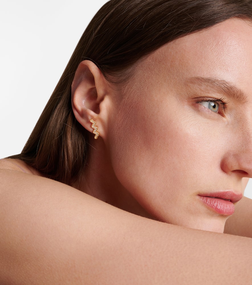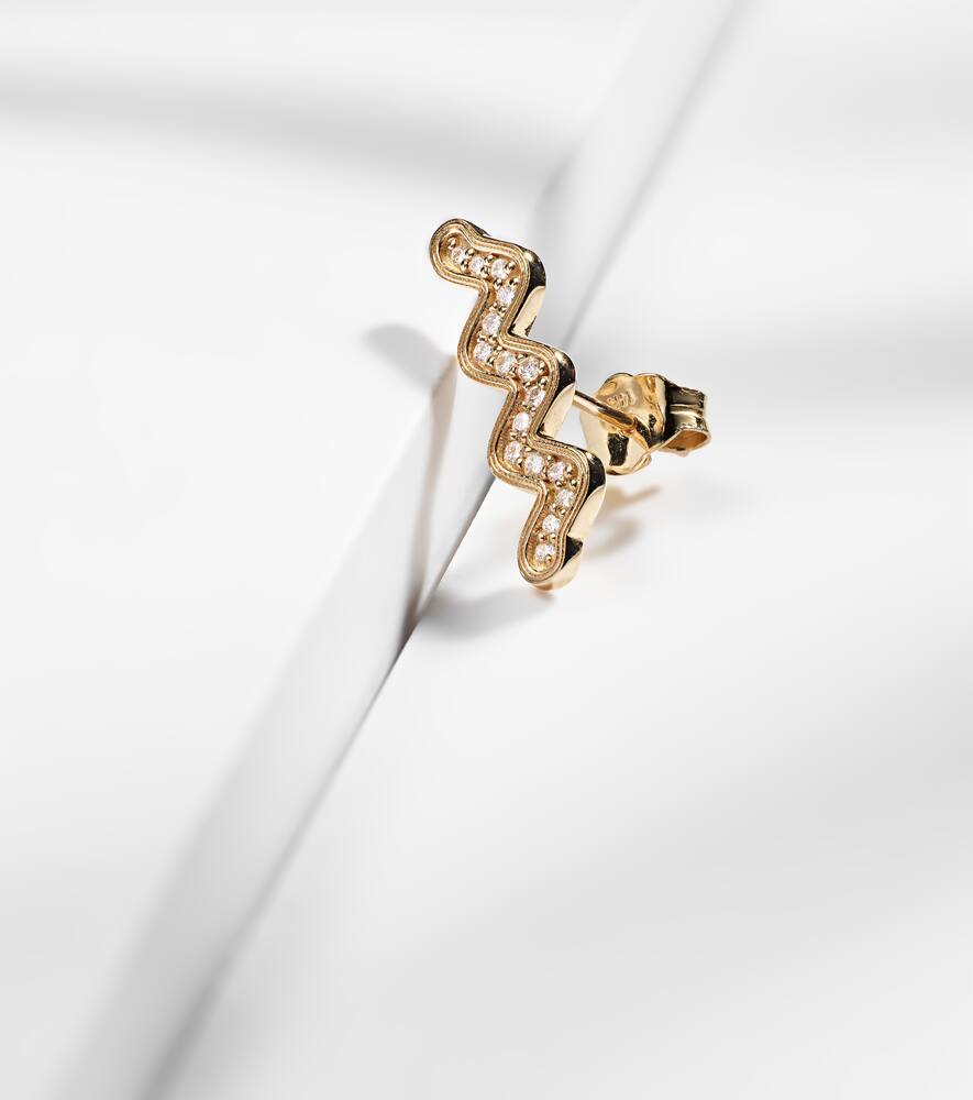 Wavy Stud 14kt gold single earring with diamonds