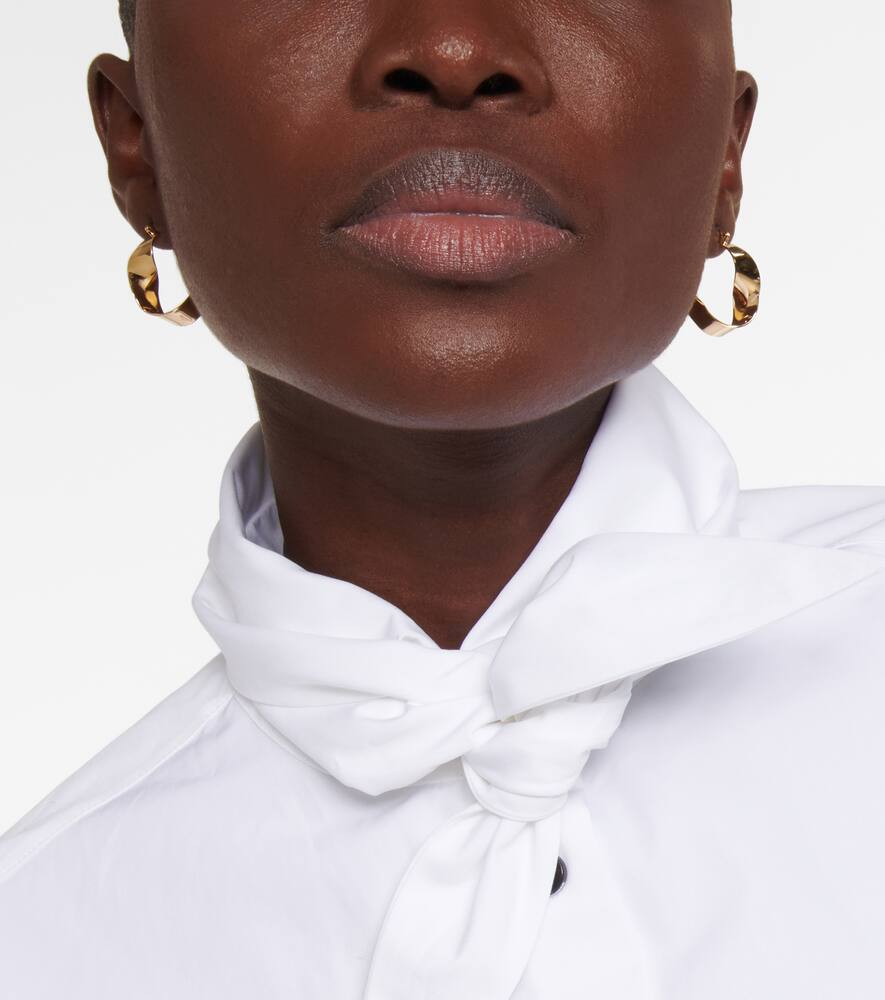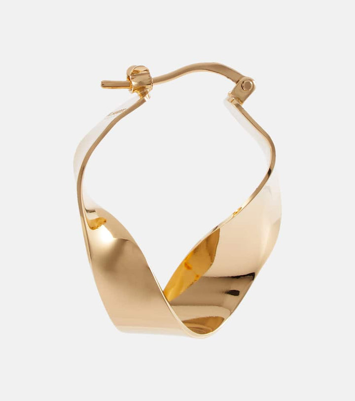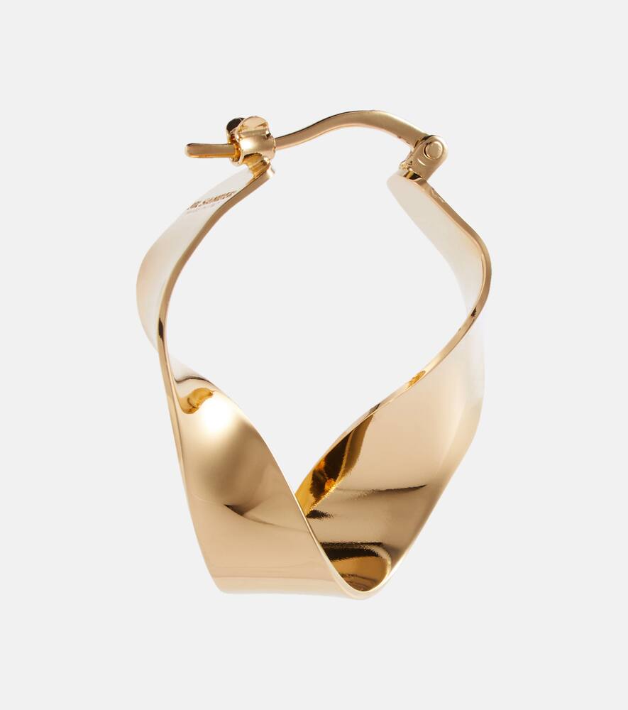 These Twisted Hoop Earrings by Jil Sander are minimalist yet bold, designed to make a statement through their fluid form. Crafted with a gentle twist in gold-plated brass, they exude modern elegance and understated luxury, perfect for everyday wear or layered styling.