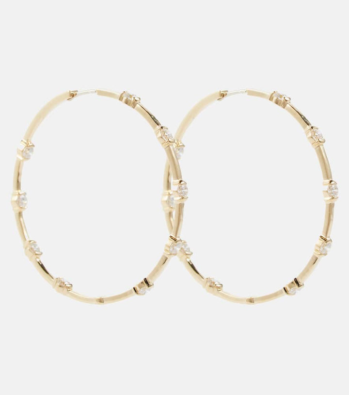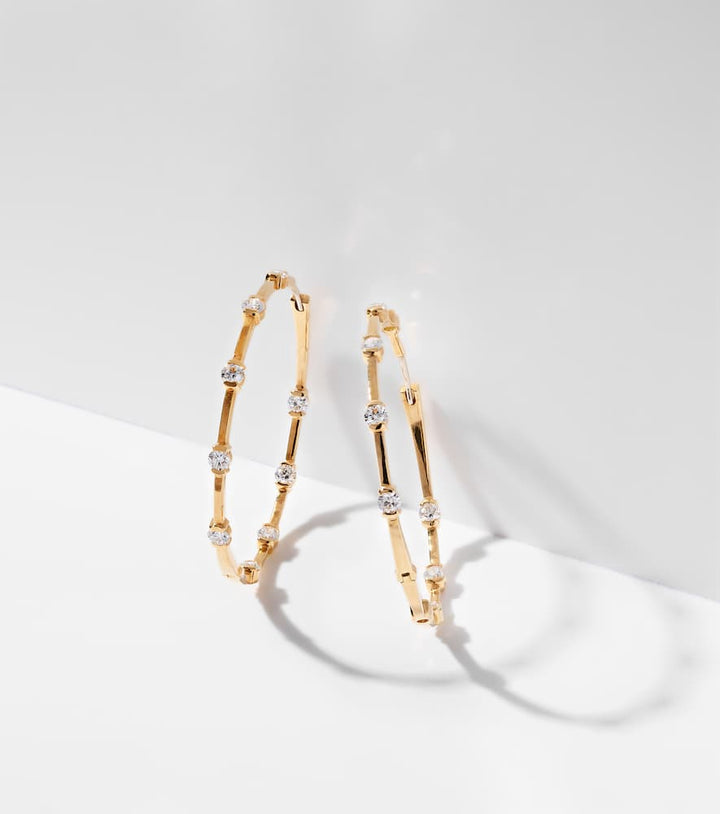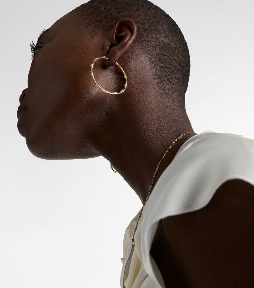 These Zea Hoop Earrings by Melissa Kaye are a luminous expression of modern sophistication. Crafted from 18kt yellow gold and adorned with natural diamonds, the classic hoop silhouette gains refined brilliance, symbolizing eternal elegance and contemporary luxury.