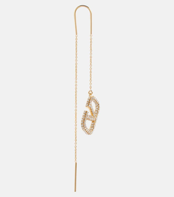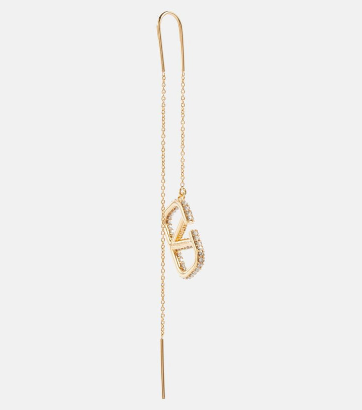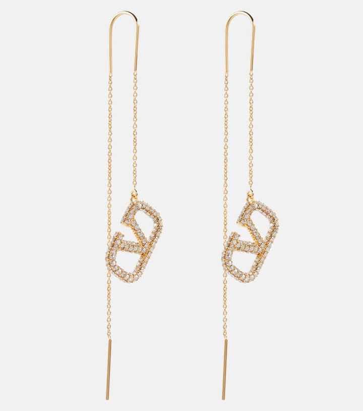 These VLogo Signature Embellished Earrings by Valentino are elongated, statement-making designs that exude luxury and boldness. Gold-plated brass and subtle embellishments create sculptural elegance, perfect for adding a contemporary accent to any look.