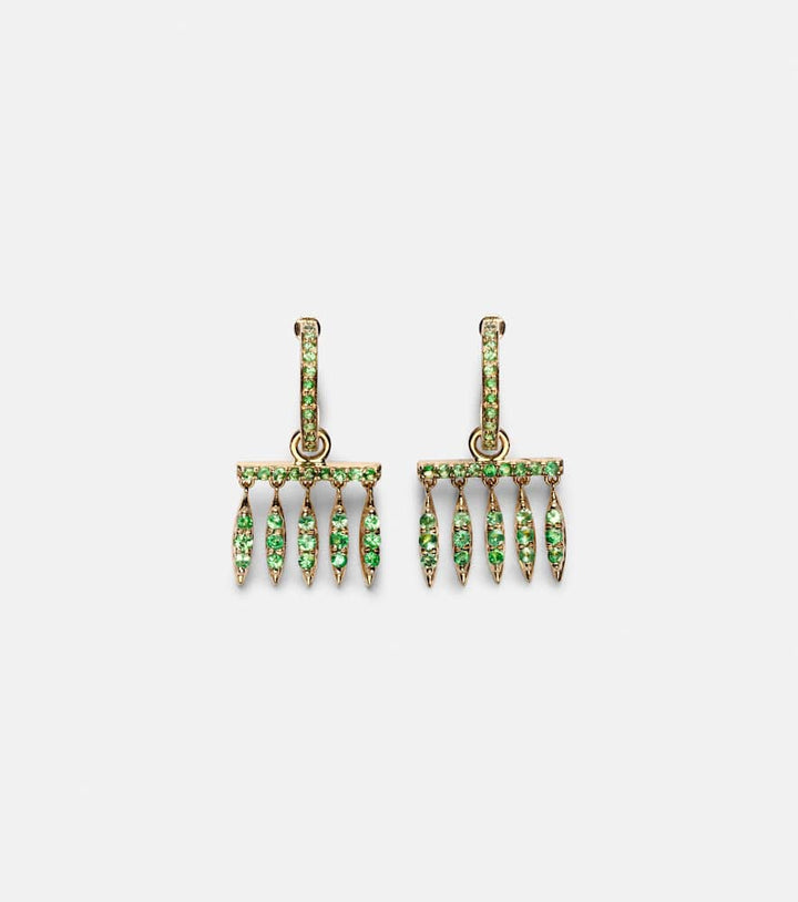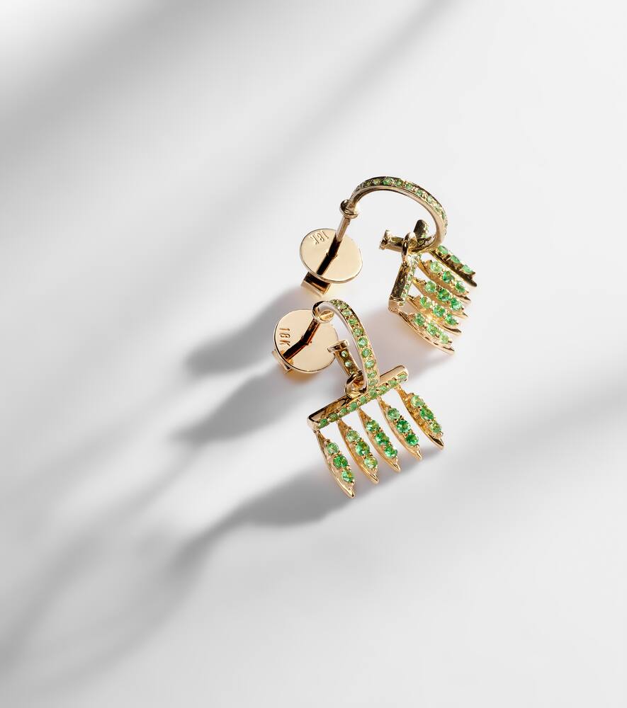 Handcrafted in 18kt yellow gold with 0.55ct round-cut tsavorites, made in Greece. Length 20mm, maximum width 11mm, inner diameter 7mm. Post-back fastening for pierced ears. Designer color name: 18k Yellow Gold.