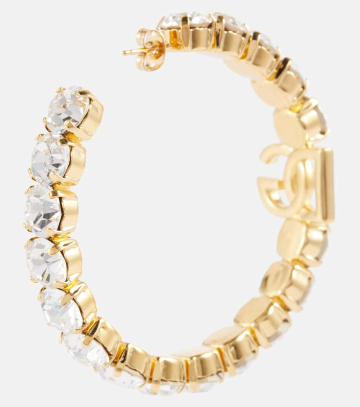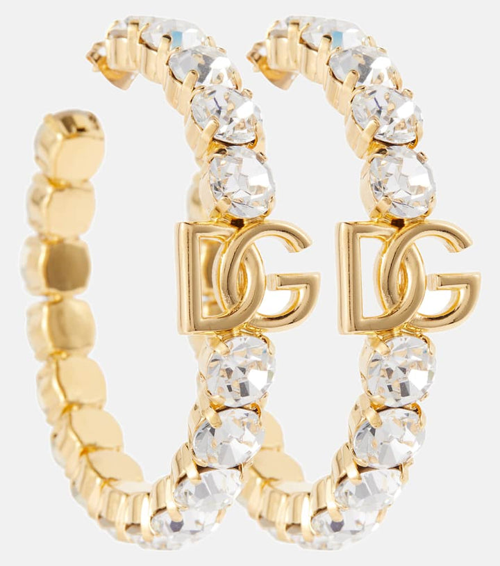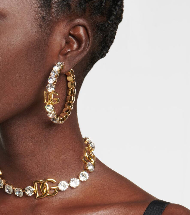 These Embellished Hoop Earrings by Dolce&Gabbana merge classic hoop design with decorative flair. Brass and glass elements create a luminous, sophisticated aesthetic, perfect for elevating casual and evening looks with bold elegance.