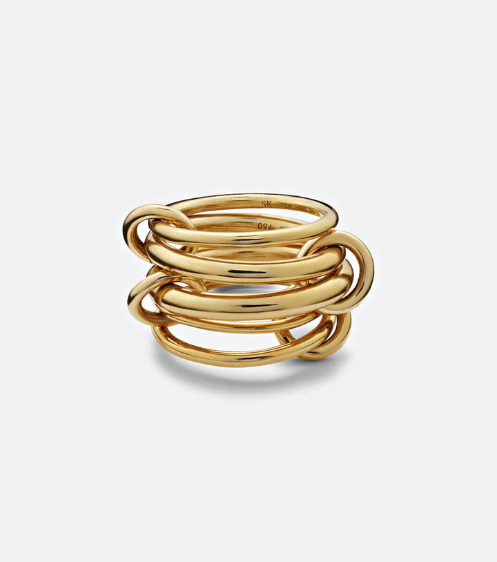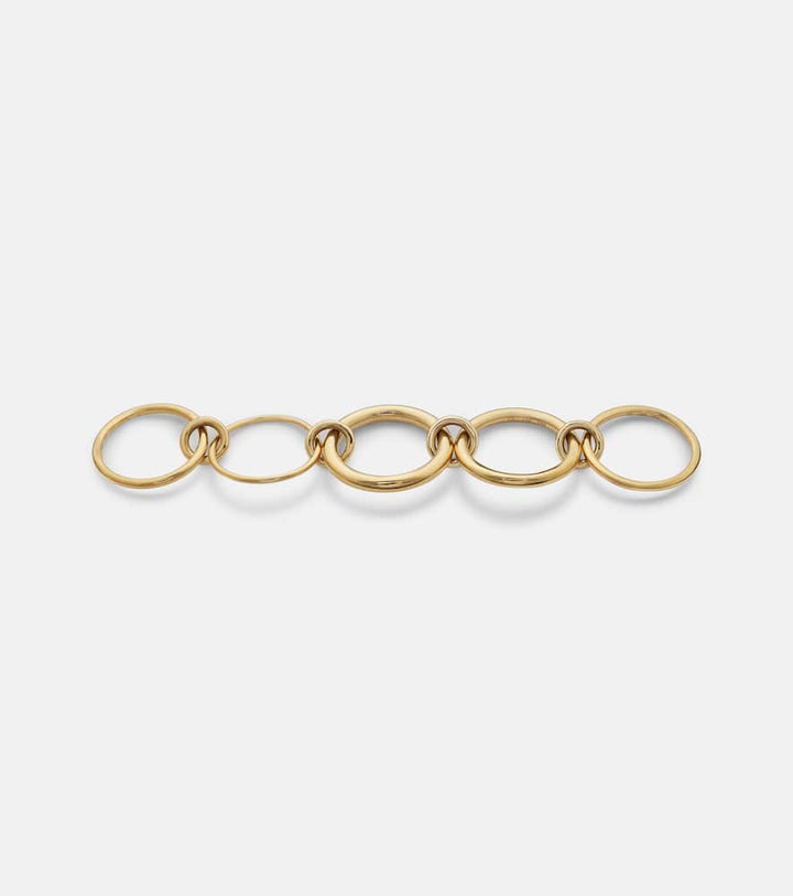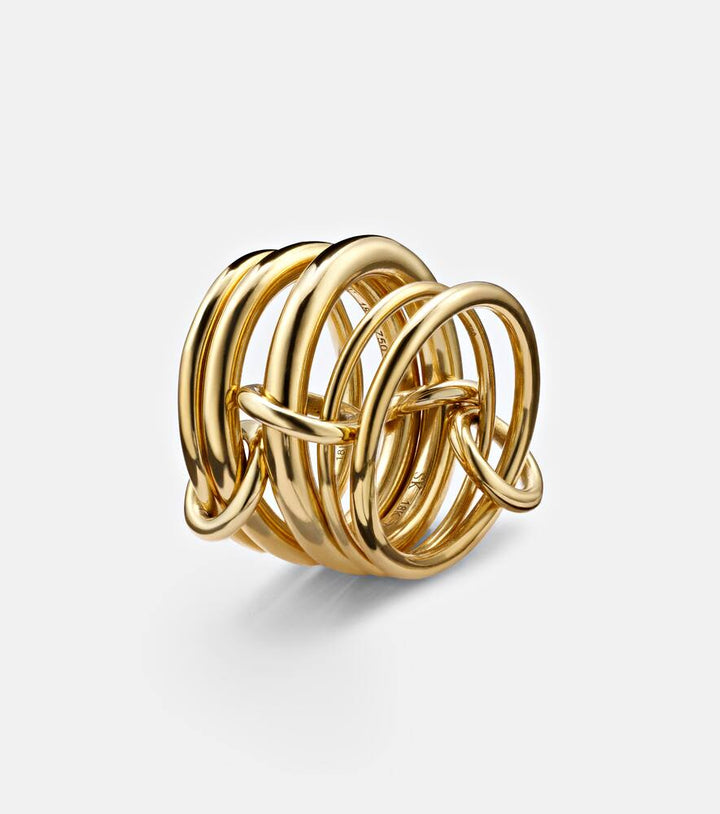These Aquarius Linked Rings by Spinelli Kilcollin are inspired by celestial design. The five interconnecting 18kt yellow gold bands can be worn stacked or across multiple fingers, creating a dynamic, astrologically inspired statement piece.