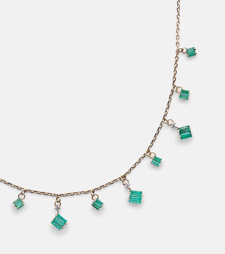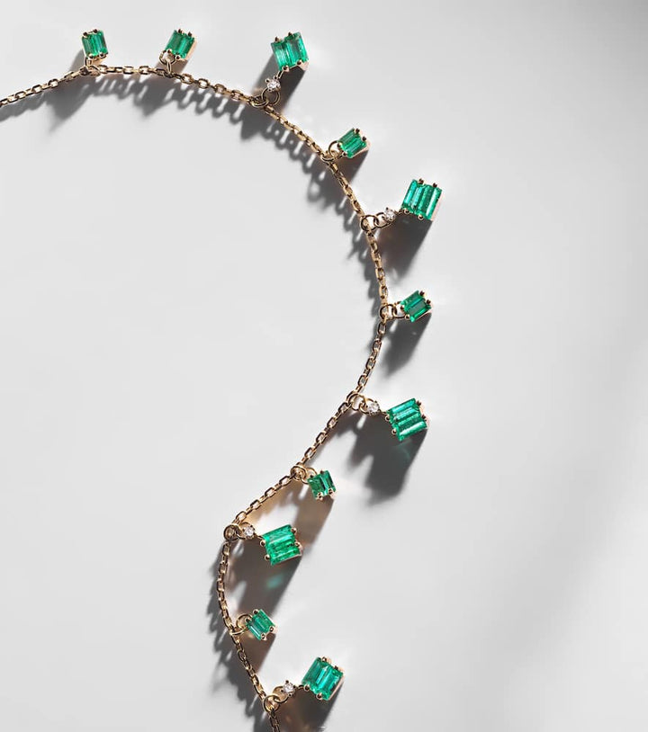 This Necklace with Diamonds and Emeralds by Suzanne Kalan is a radiant, colorful statement. Crafted in 18kt yellow gold, it features sparkling diamonds and lush green emeralds, evoking modern elegance and refined sophistication.