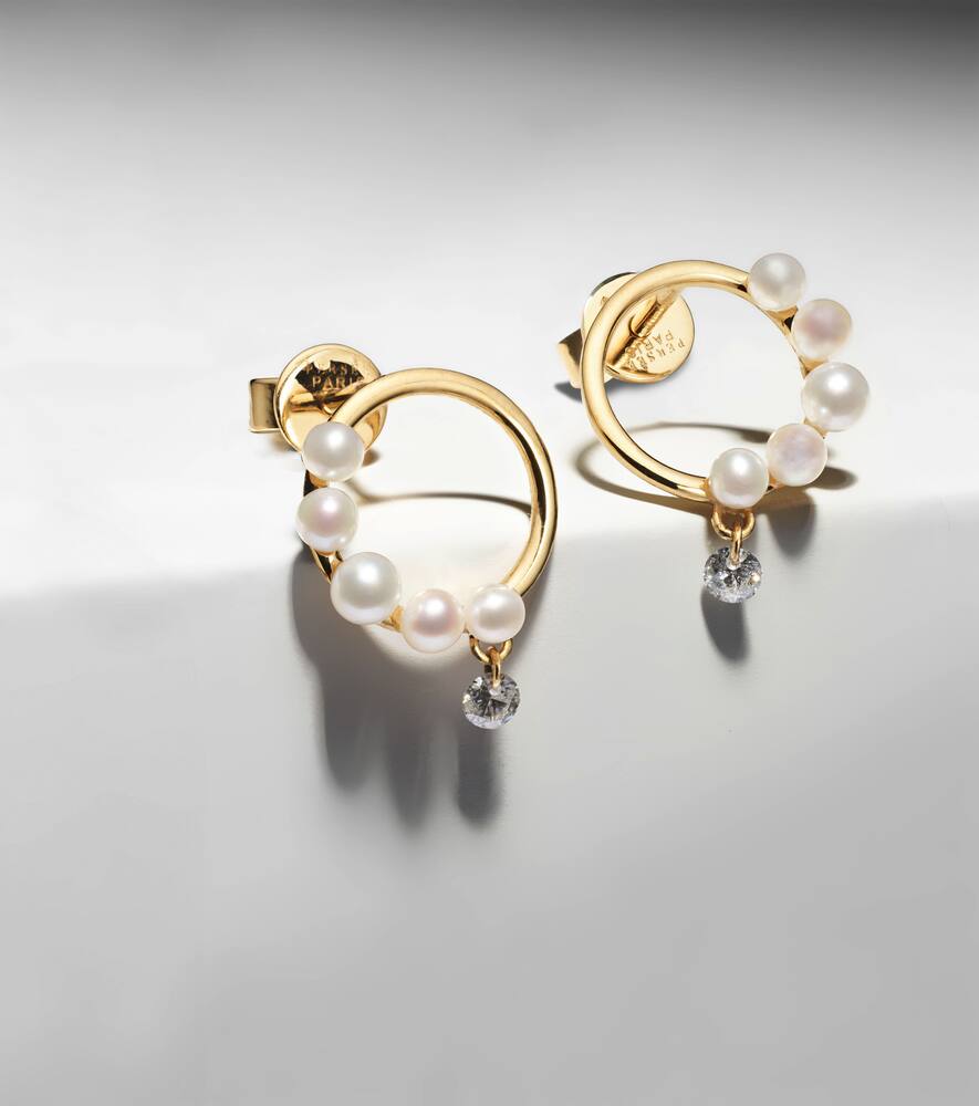 Persée Aphrodite 18kt gold hoop earrings with pearls and diamonds