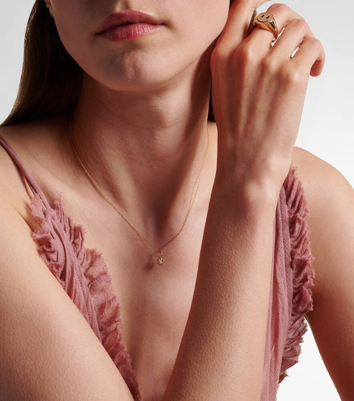 Handcrafted in 14kt yellow gold with 0.09ct diamonds, made in Hong Kong. Adjustable length 46cm, pendant length 6mm, pendant width 7mm. Lobster-clasp fastening. Designer color name: Yellow Gold.