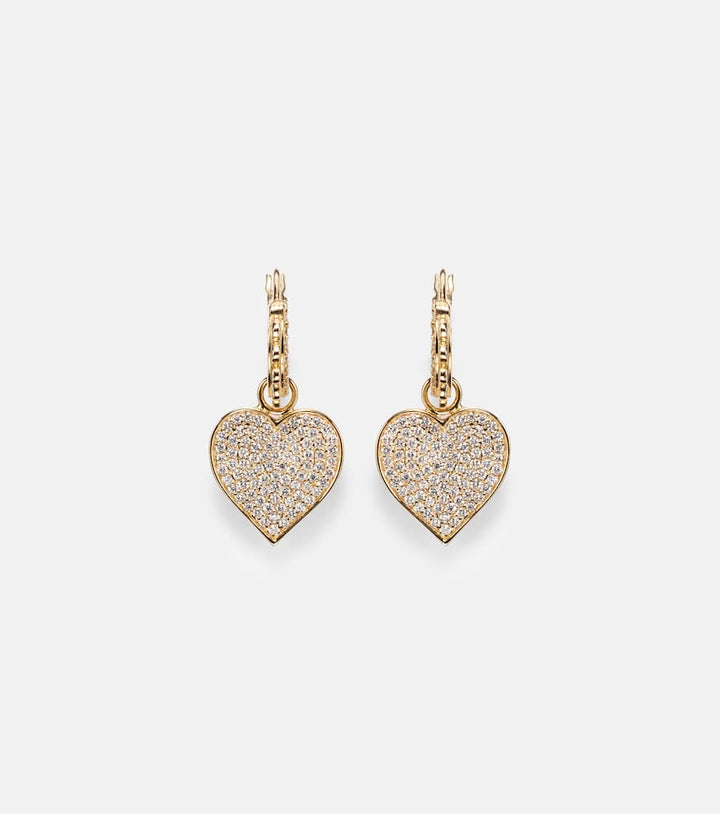 14kt gold scalloped heart charm hoop earrings with diamonds