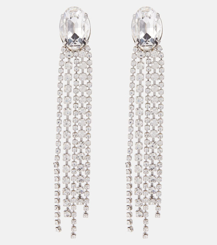 These Crystal-Embellished Earrings by Jennifer Behr are sleek, elongated, and luminous. Crafted in plated brass and glass, they create refined movement and subtle sparkle for versatile styling.