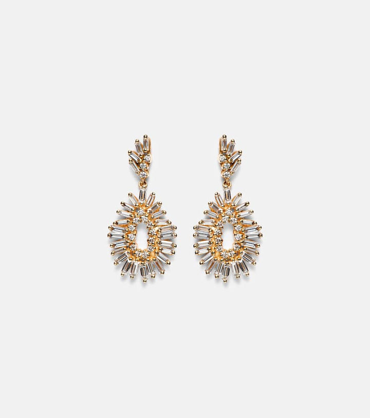 These Diamond Earrings by Suzanne Kalan are chic, modern, and luminous. Crafted in 18kt yellow gold, they feature a combination of 0.8ct and 0.15ct diamonds, offering subtle sparkle with versatile elegance.