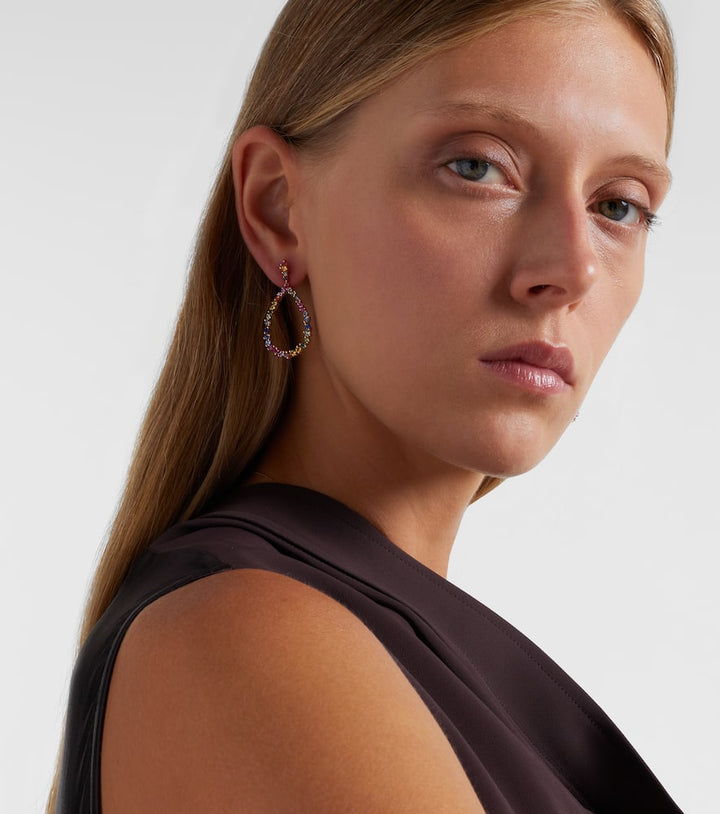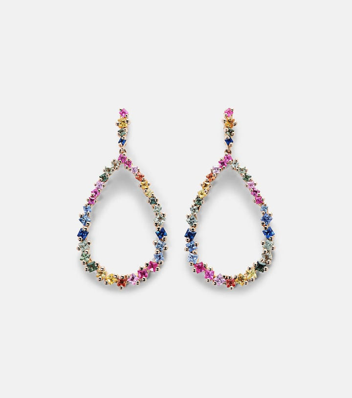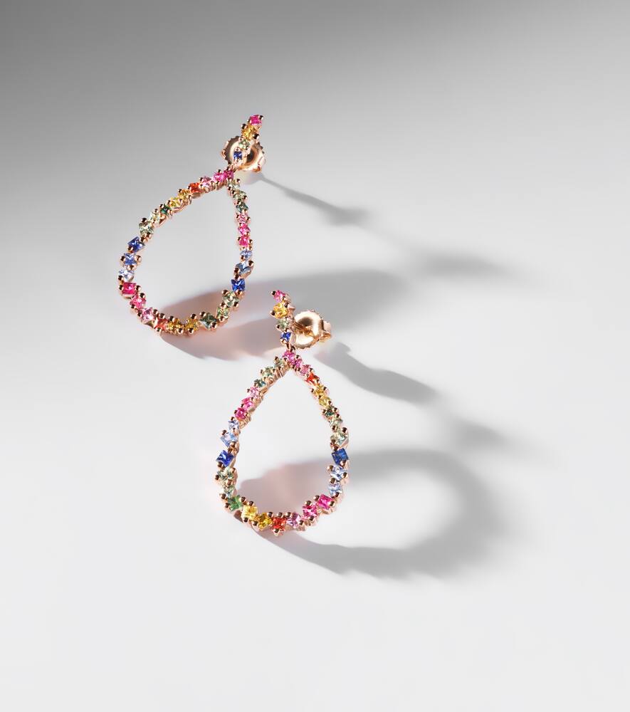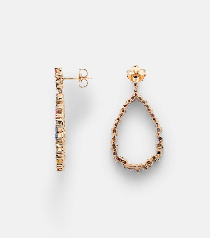Handcrafted in 18kt rose gold with 2.92ct square-cut sapphires, made in the USA. Length 40mm, maximum width 20mm. For pierced ears. Designer color name: Rainbow/RG.