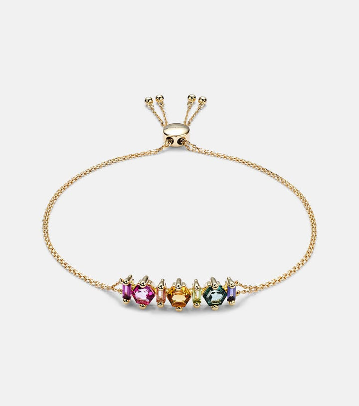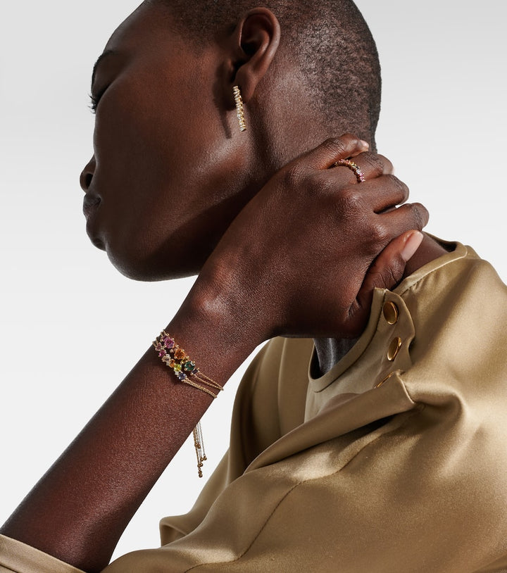 This Adjustable Chain Bracelet with Gemstones by Suzanne Kalan is a bold, colorful statement. Crafted in 14kt yellow gold, it features mixed gemstones, designed for versatile styling and easy layering.