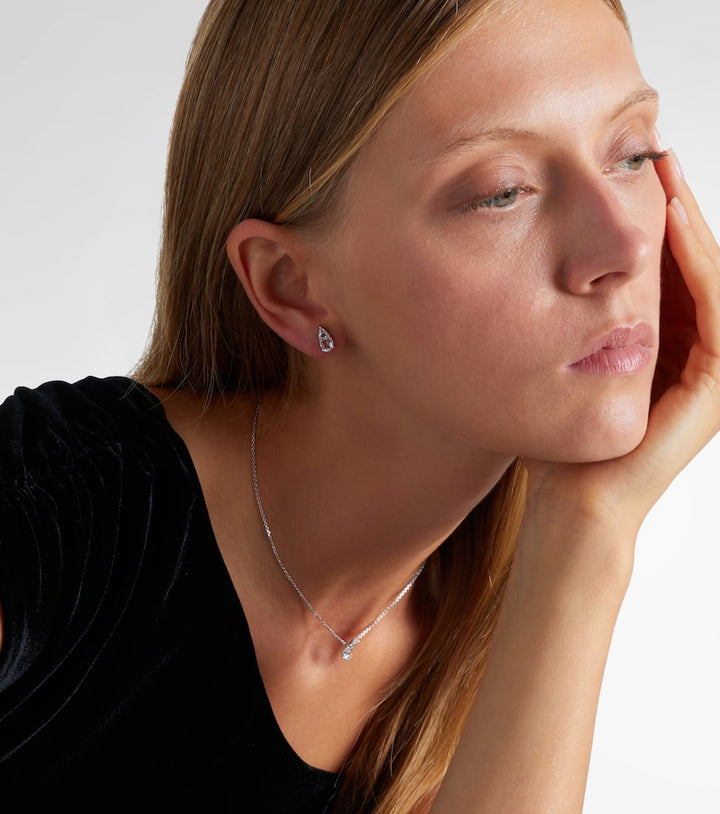 These Ayda Stud Earrings with Topaz by Suzanne Kalan are delicate and luminous. Crafted in 14kt white gold, the pear-shaped topaz stones create subtle sparkle for everyday elegance.
