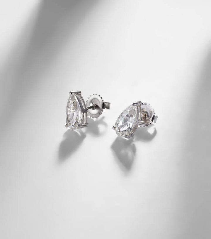 Handcrafted in 14kt white gold with pear-shaped topaz, made in the USA. Length 11mm, maximum width 5mm. Butterfly-back fastening for pierced ears. Designer color name: Topaz/WG.