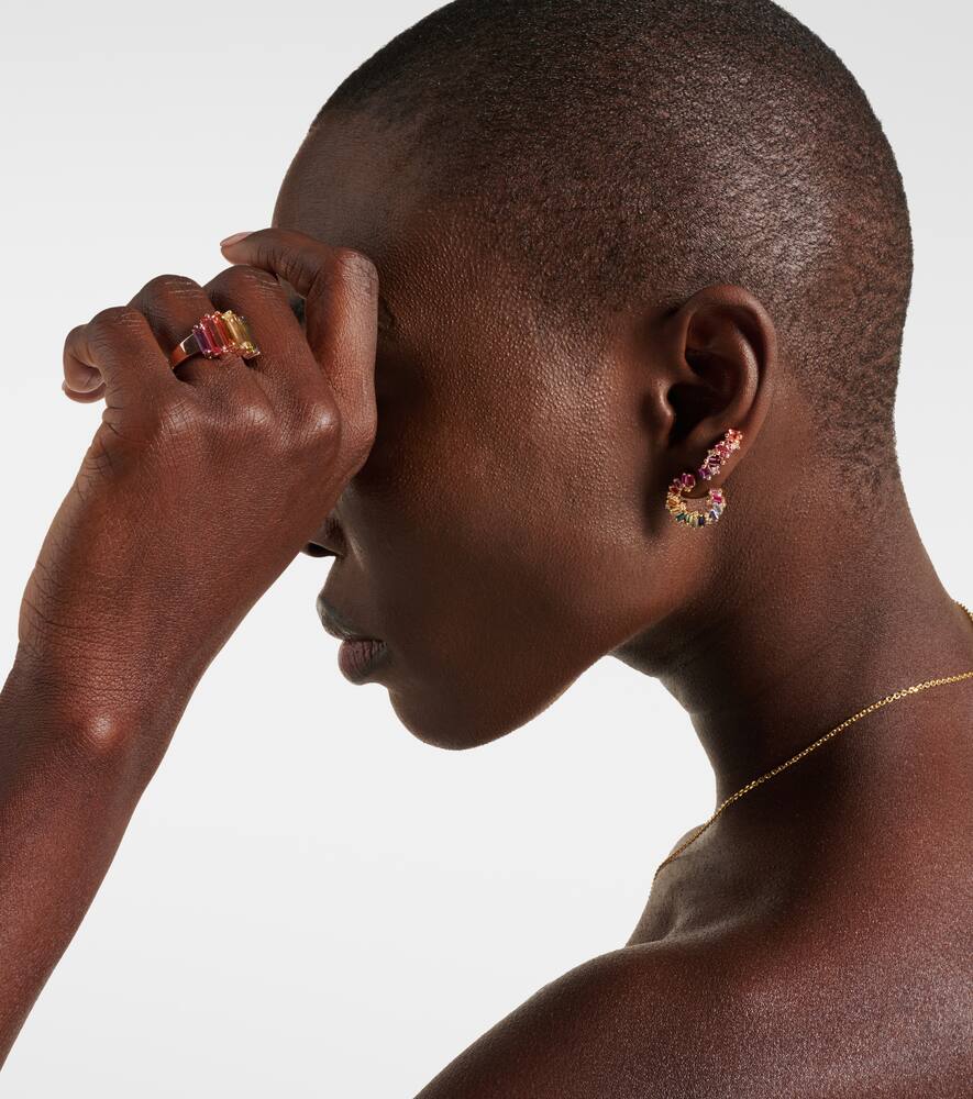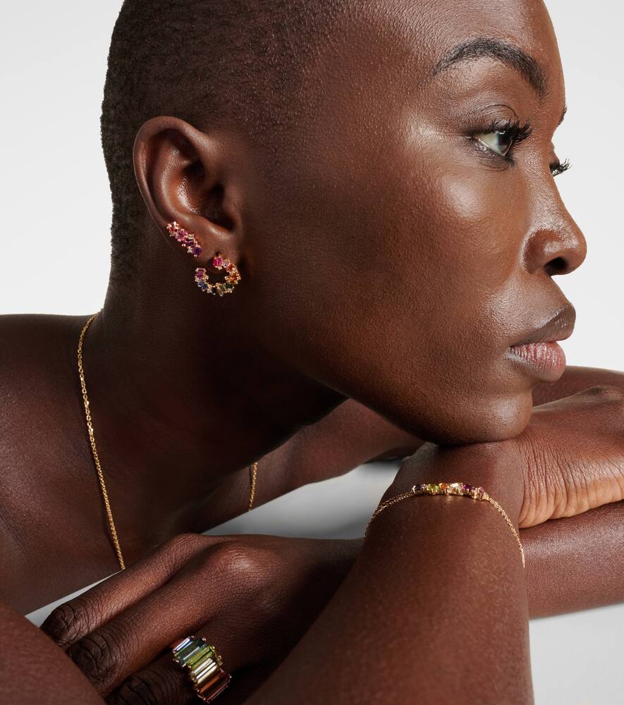These Climber Earrings with Gemstones and Diamonds by Suzanne Kalan are contemporary and playful. Crafted in 14kt rose gold, the 14-stone design with 0.07ct diamonds creates elegant movement along the ear.