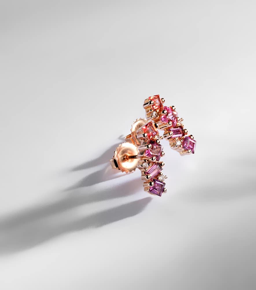 Handcrafted in 14kt rose gold with 0.07ct diamonds and 14 gemstones, made in the USA. Length 16mm, maximum width 5mm. Butterfly-back fastening. Designer color name: Pinkmix/RG.