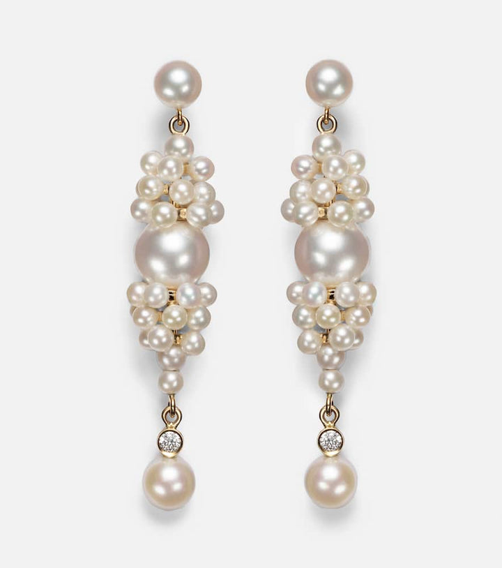 Rêve de Diamant 14kt gold earrings with diamonds and pearls