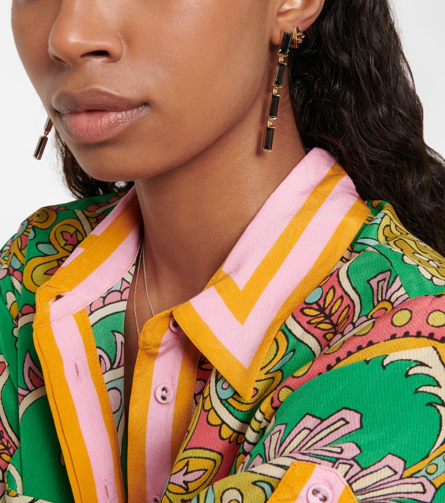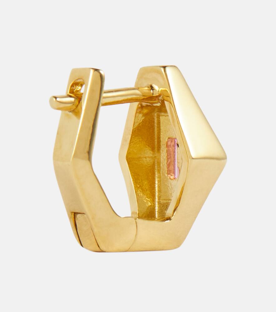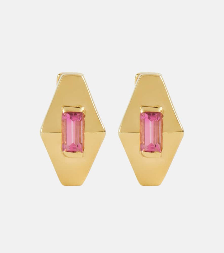 These Deco Rombo Mini Earrings by Aliita are delicate and colorful. Crafted in 9kt yellow gold with pink tourmaline, they offer understated elegance with a pop of color.