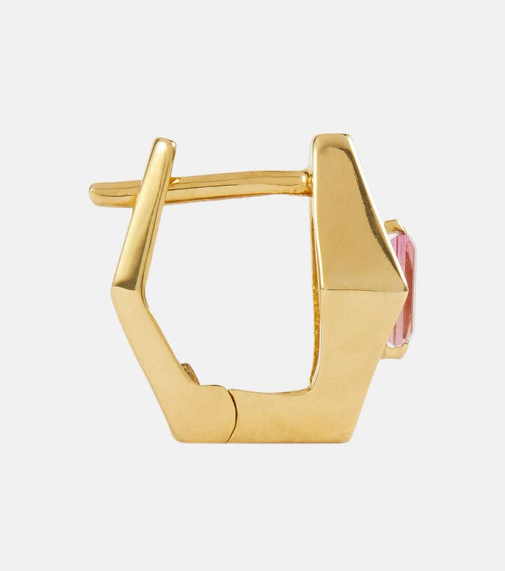 Handcrafted in 9kt yellow gold with pink tourmaline, made in Italy. Length 12mm, maximum width 7mm. Hinge closure. Designer color name: Pink Tourmaline.