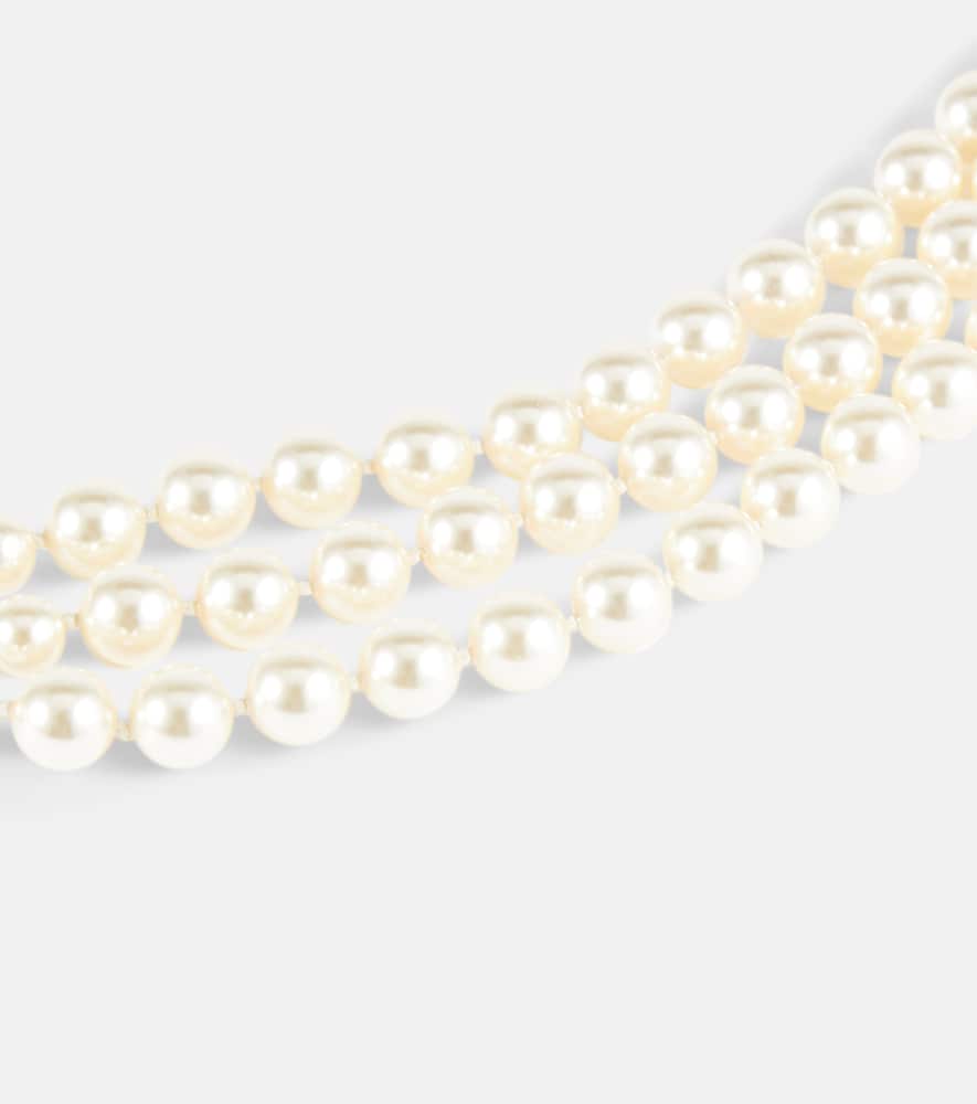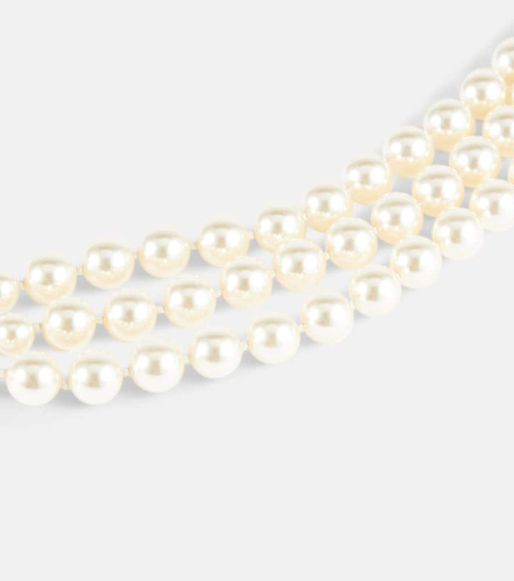 This Embellished Choker by Vivienne Westwood is dramatic and contemporary. Crafted with faux pearls and brass detailing, it adds sculptural elegance and playful luxury to any look.