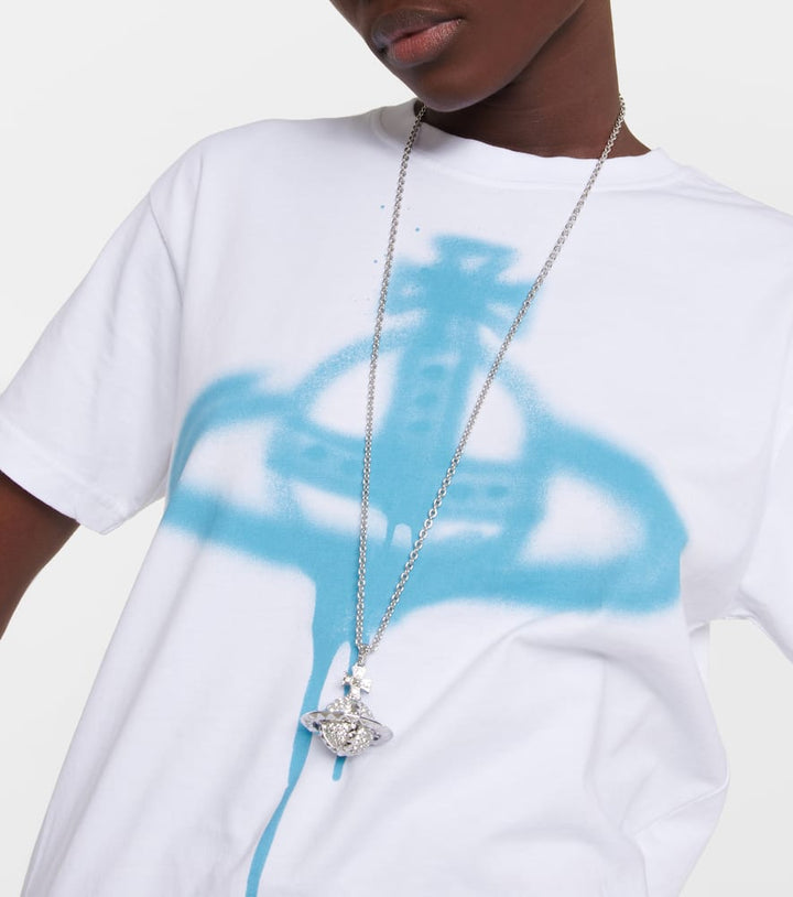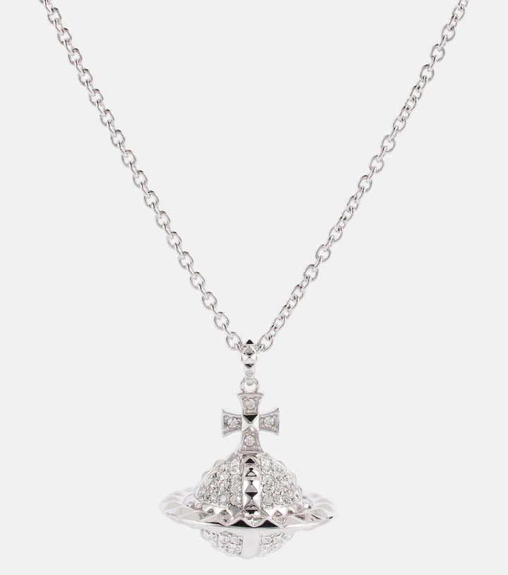 This Pendant Necklace by Vivienne Westwood is striking and statement-making. Crafted in brass with crystal embellishments, the long chain and bold pendant create a versatile, contemporary piece.