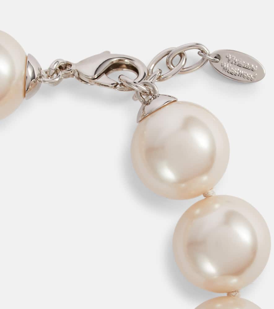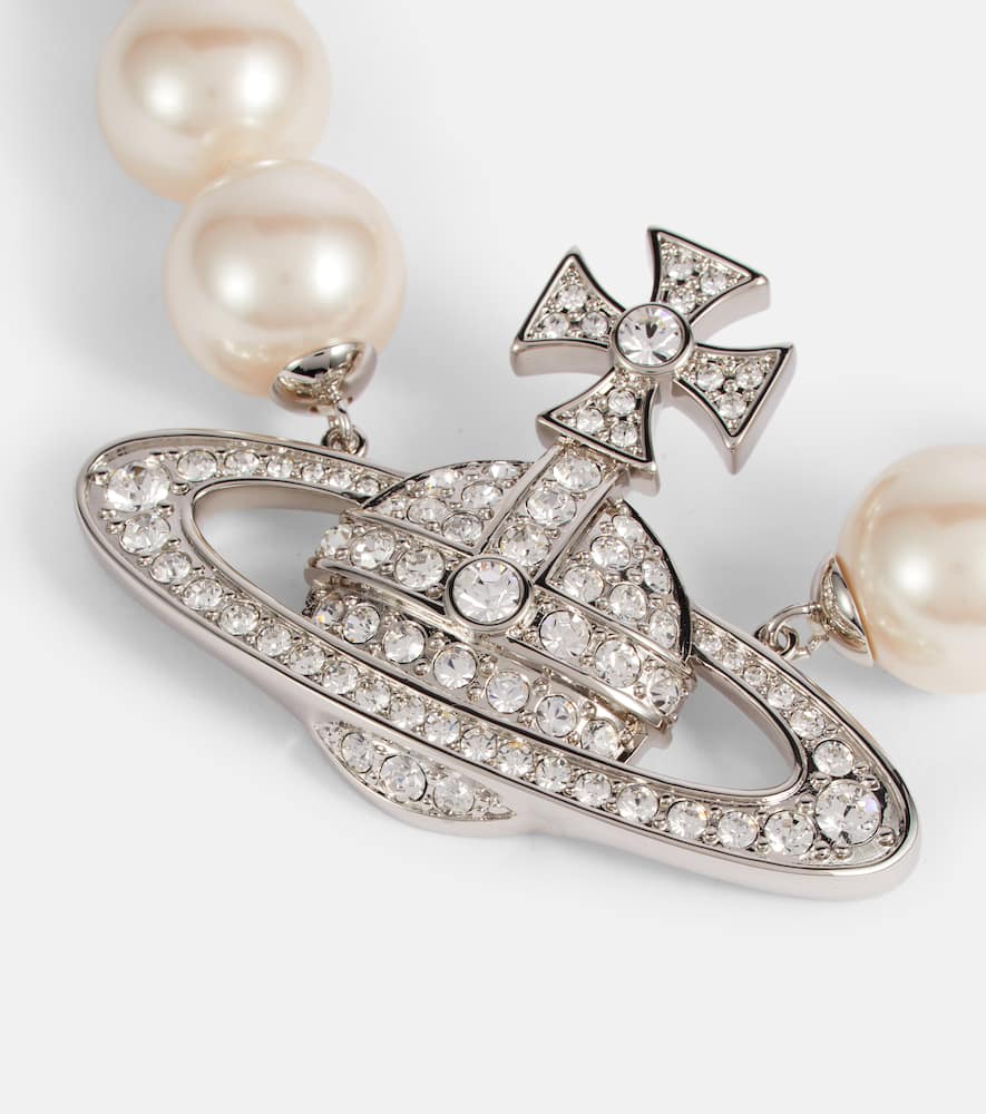 This Orb Embellished Choker by Vivienne Westwood is a bold, iconic statement. Crafted in brass with faux pearls, the adjustable design features a striking pendant, merging luxury with contemporary flair.