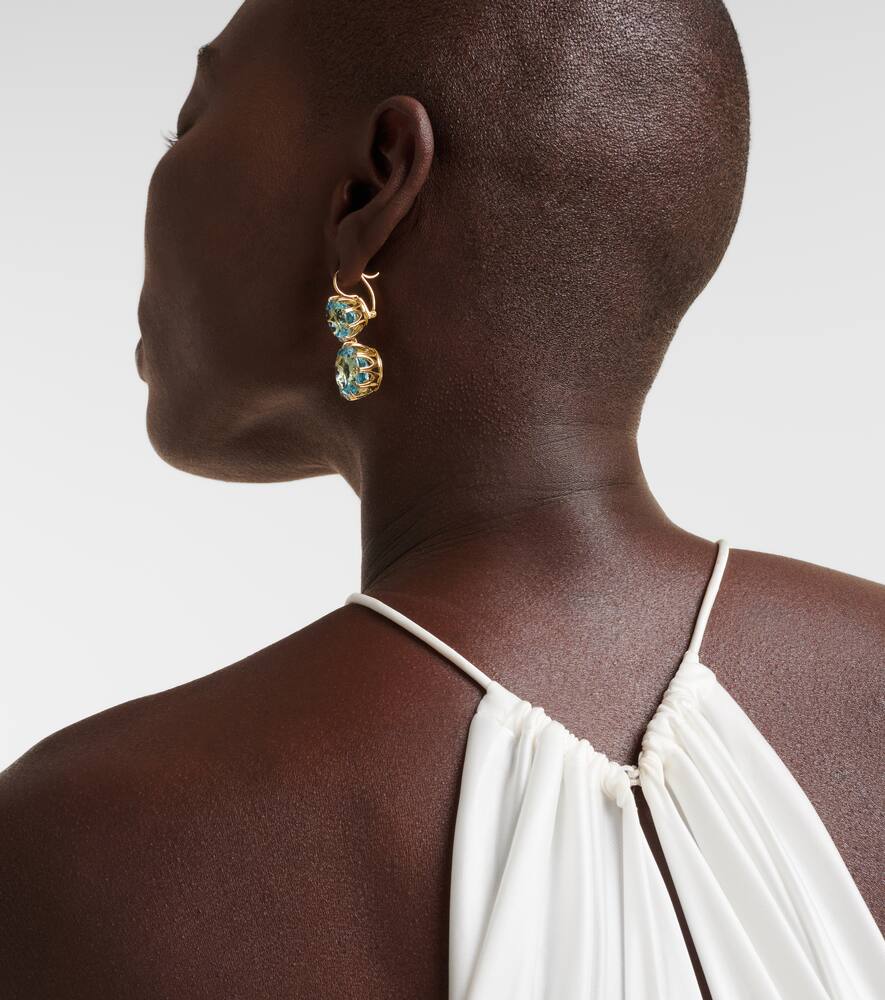 These Topaz Earrings by Ileana Makri are radiant and modern. Crafted in 18kt yellow gold, they feature 59.61ct blue topaz, delivering vibrant color and refined elegance for statement styling.