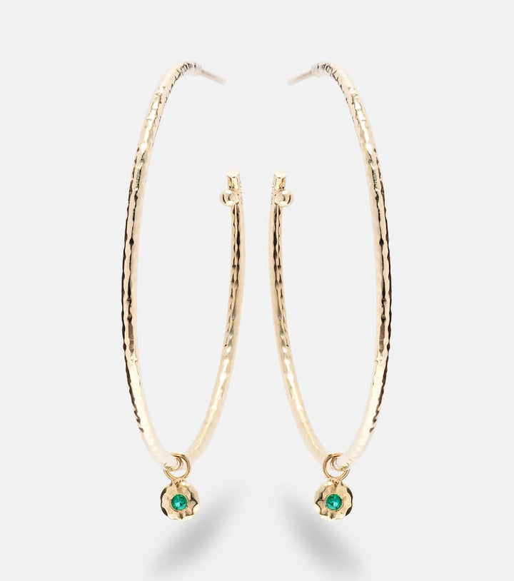 Nesting Gem Medium 18kt gold hoop earrings with emeralds