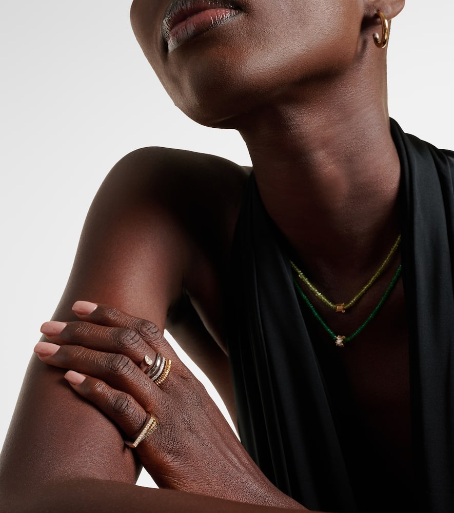 Rainbow K is a Parisian fine jewelry brand created by Kelly Souied and Kelia Toledano, two designers with a shared passion for vintage aesthetics and innovative design. Rainbow K’s style blends Art Deco influences with modern elements, featuring colorful gemstones arranged in geometric and organic patterns. Their jewelry is crafted in a Parisian atelier, emphasizing meticulous detail and high craftsmanship. The brand aims to make high jewelry accessible for daily wear.