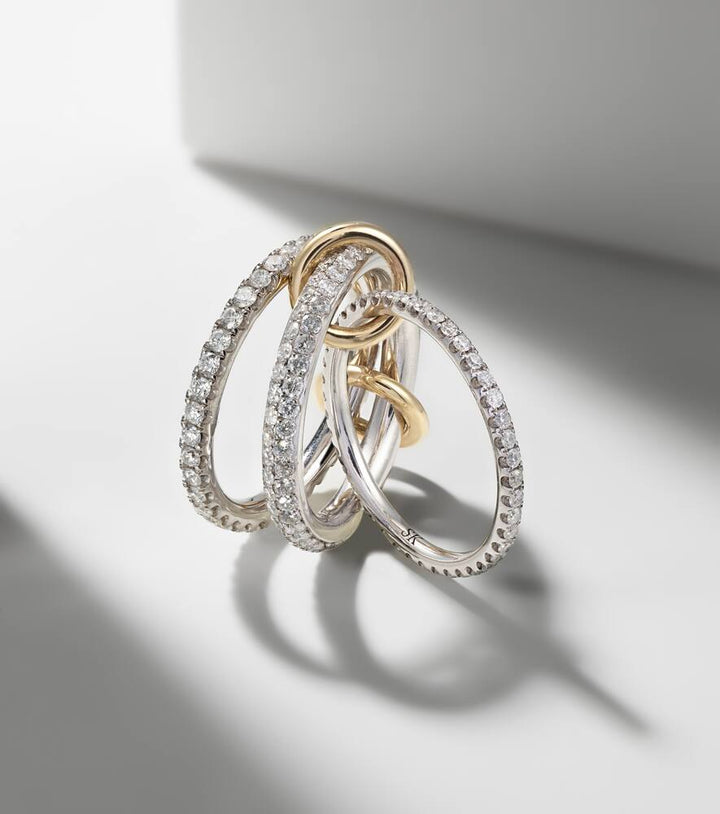 Spinelli Kilcollin is a luxury jewelry brand founded by designer Yves Spinelli and his wife, Dwyer Kilcollin, known for its innovative and contemporary designs. The brand’s signature style is the "Galaxy Rings," a series of interconnected, stackable bands that can be worn across multiple fingers or stacked on one. Crafted from a mix of gold, sterling silver, and diamonds, Spinelli Kilcollin's pieces blend minimalism with versatility. Their designs emphasize modern elegance and modularity, offering a bold yet refined aesthetic that appeals to those seeking unique, multifunctional jewelry.
