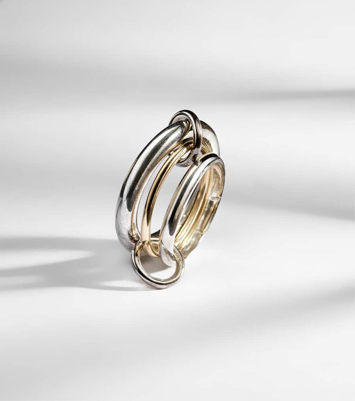 Spinelli Kilcollin is a luxury jewelry brand founded by designer Yves Spinelli and his wife, Dwyer Kilcollin, known for its innovative and contemporary designs. The brand’s signature style is the 'Galaxy Rings,' a series of interconnected, stackable bands that can be worn across multiple fingers or stacked on one. Crafted from a mix of gold, sterling silver, and diamonds, Spinelli Kilcollin's pieces blend minimalism with versatility. Their designs emphasize modern elegance and modularity, offering a bold yet refined aesthetic that appeals to those seeking unique, multifunctional jewelry.
