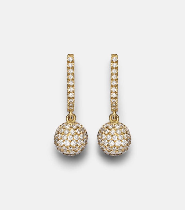 These Ball 18kt gold drop earrings with diamonds by Ileana Makri are a magnificent and opulent statement. Made in Greece from 18kt yellow gold, these earrings are a breathtaking masterpiece, featuring a total carat weight of 2.04 of brilliant diamonds. The design is a celebration of a sophisticated and graceful style and is perfect for adding a touch of high-end glamour to your look. They are a versatile staple that you will love for years to come.