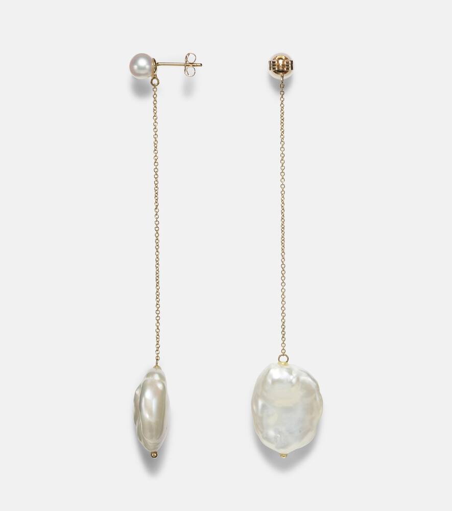 These earrings are made in the USA from 14kt yellow gold. They feature Baroque freshwater pearls. They are for pierced ears.