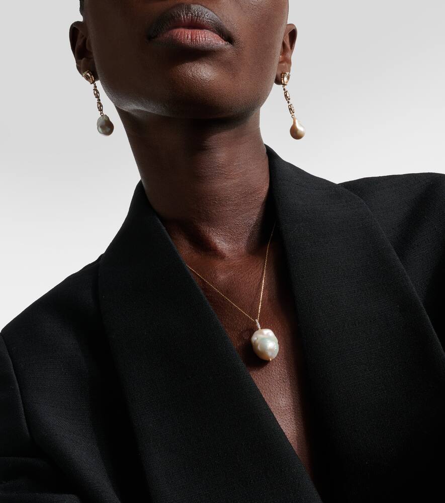 This necklace is made in the USA from 18kt yellow gold with a lobster-clasp fastening. It features a Baroque freshwater pearl and 0.07 carats of round-cut diamonds in a pavé setting.