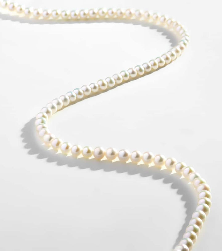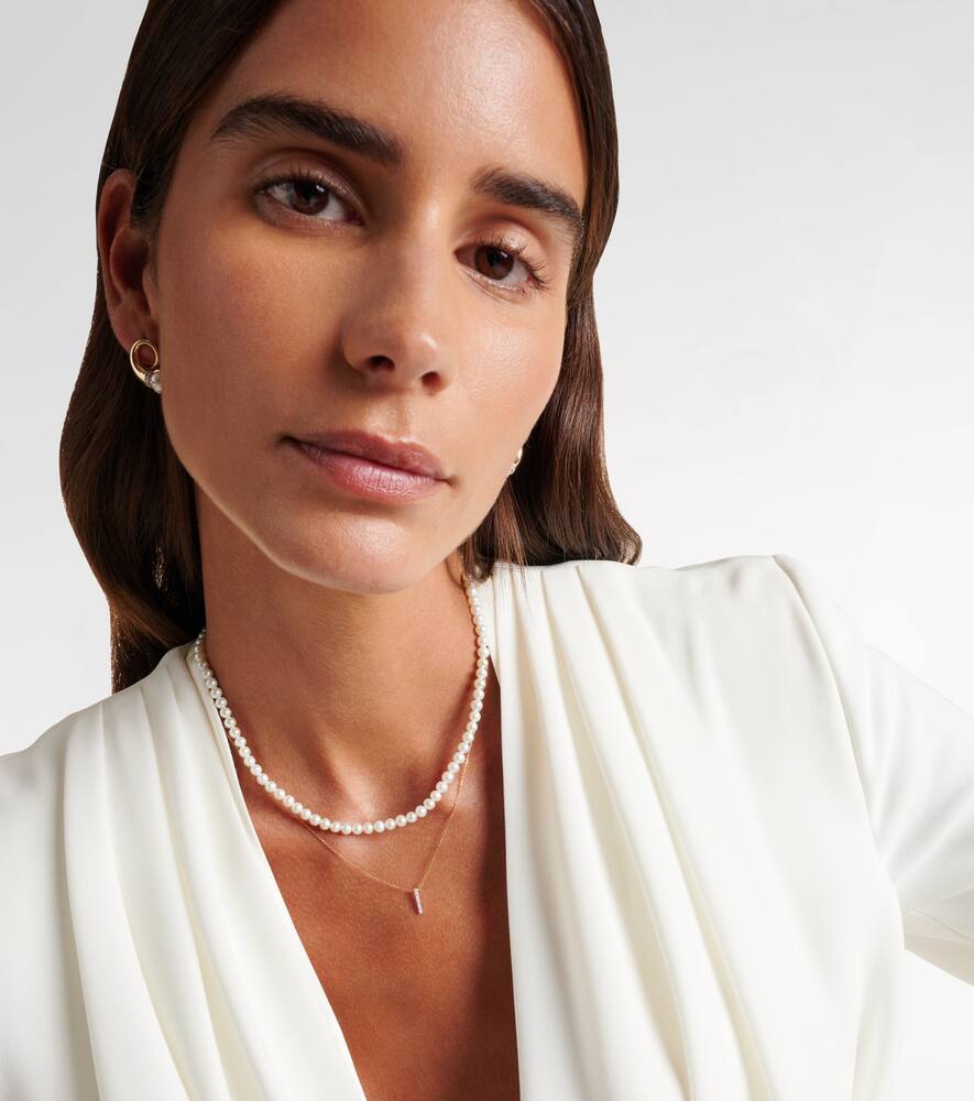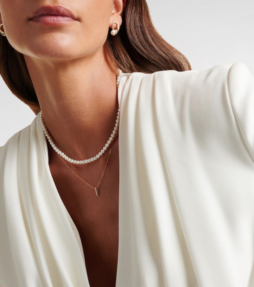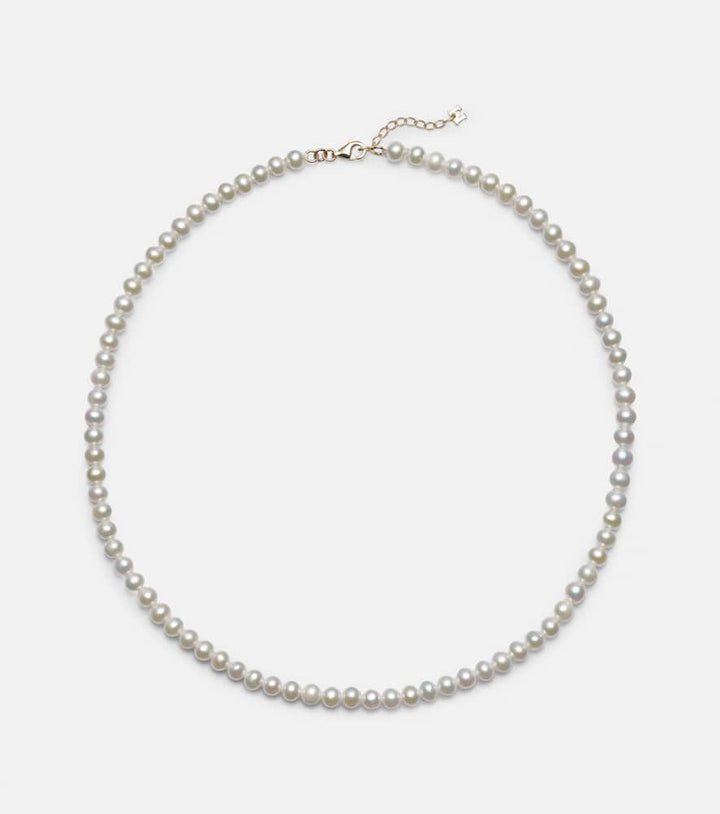 This adjustable choker is made in the USA from 14kt yellow gold with a lobster-clasp fastening. It features freshwater pearls.