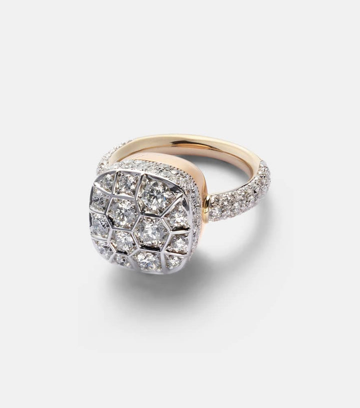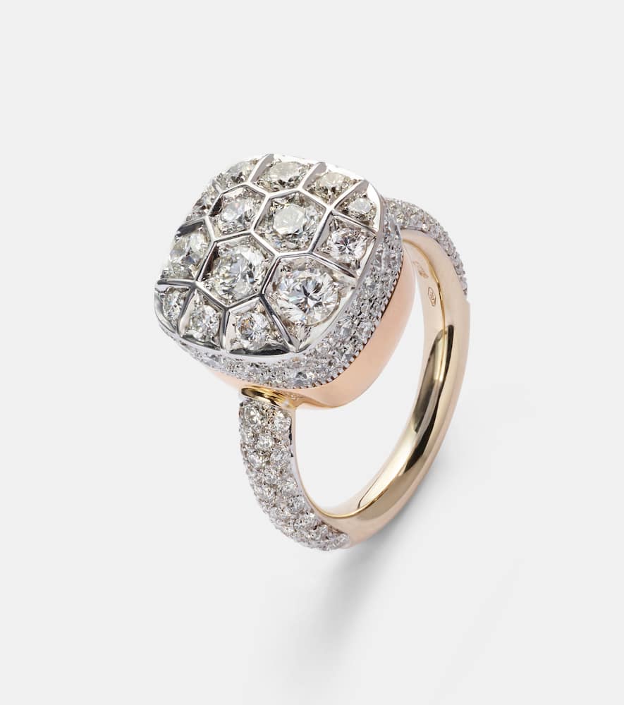 This Nudo Solitaire Assoluto 18kt gold ring with diamonds by Pomellato is a magnificent and opulent statement piece. Made in Italy from 18kt rose and white gold, this ring is a breathtaking masterpiece, featuring a total carat weight of 3.7 of diamonds. The design is a celebration of a sophisticated and graceful style and is perfect for adding high-end sparkle to any ensemble.