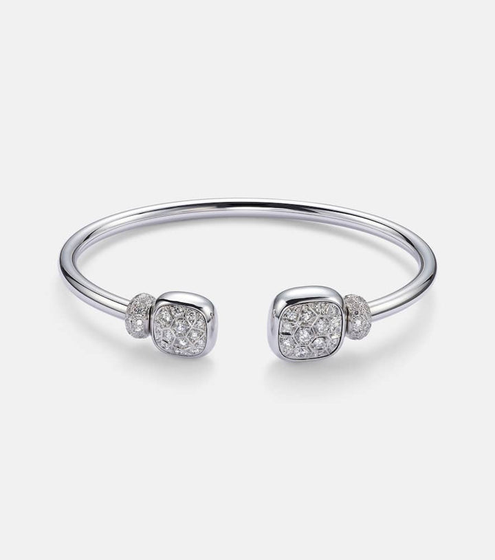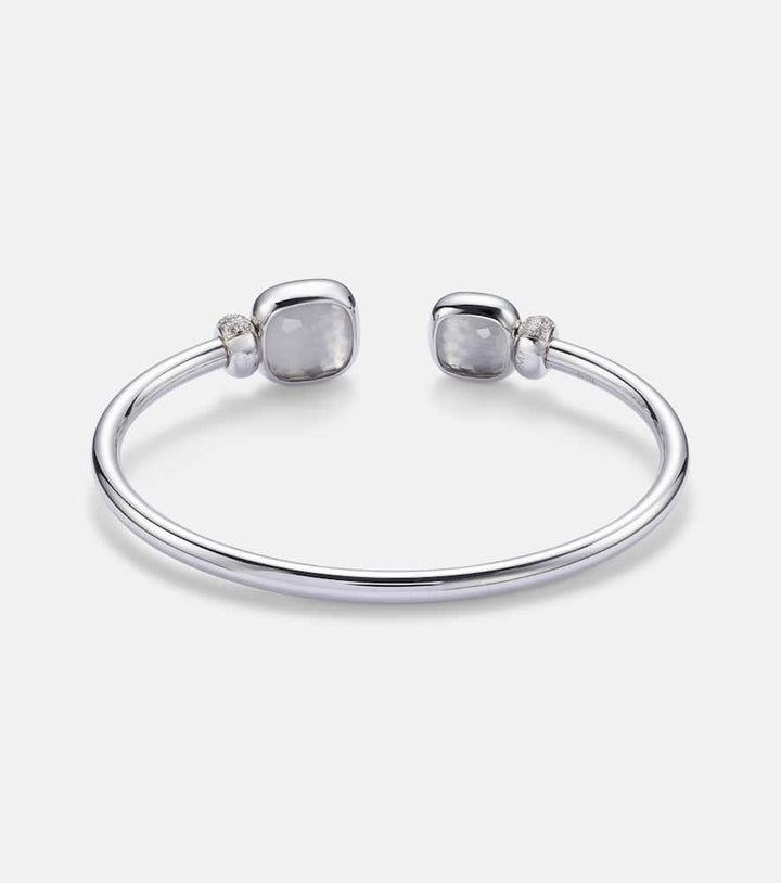 This Nudo 18kt white gold bracelet with diamonds and topaz by Pomellato is a magnificent and opulent statement. Made in Italy from 18kt white gold, this bracelet is a breathtaking masterpiece, featuring a total carat weight of 1.6 of brilliant diamonds and white topaz. The design is a celebration of a sophisticated and graceful style and is perfect for adding a touch of high-end glamour to your look.