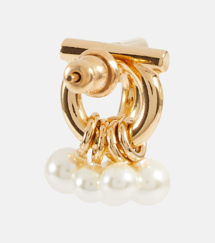 These earrings are made in Italy from 70% brass and 30% glass with a pin fastening. They feature faux pearls and are for pierced ears. They have a length of 1.8cm (0.5") and a width of 1.2cm (0.5").