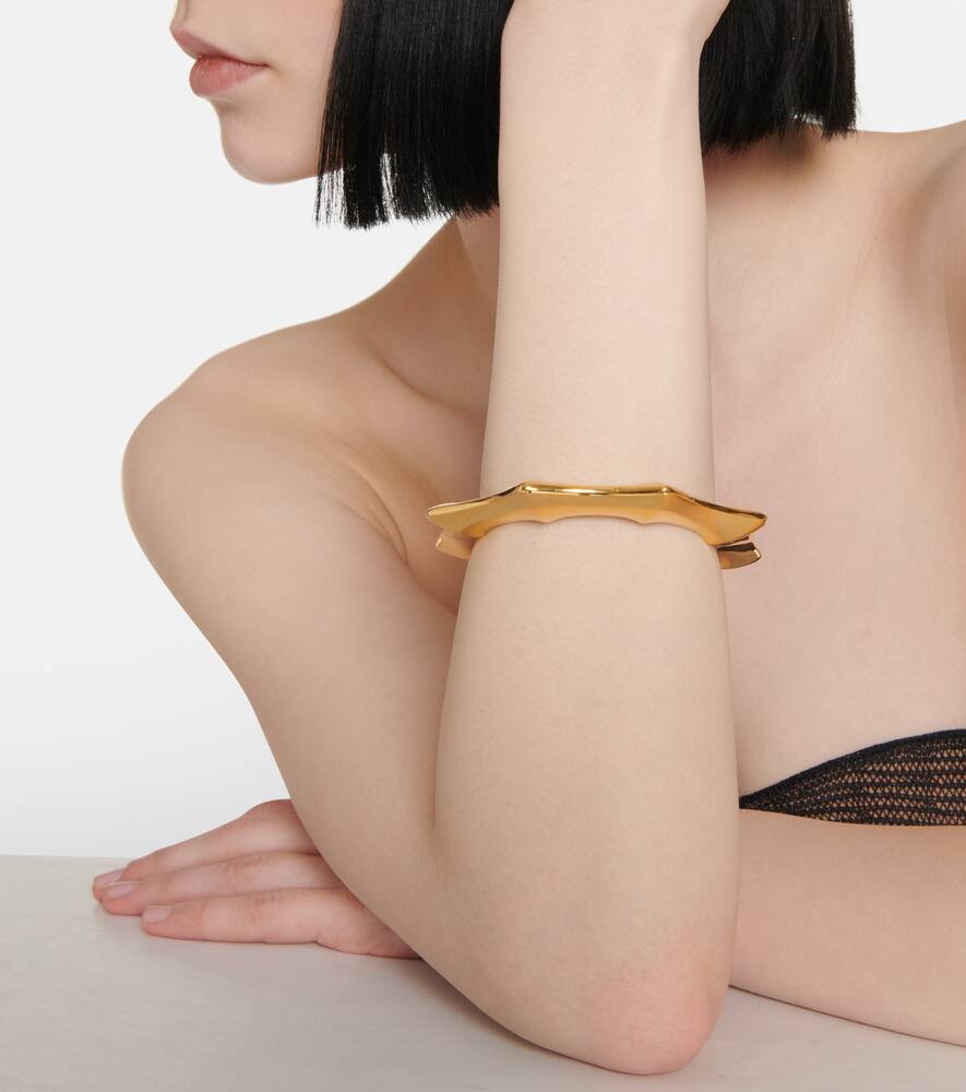 This Julius Small gold-plated bangle by Khaite is a modern and minimalist piece. Made in Italy from gold-plated brass, this bangle features a sleek and simple design. The design is a beautiful blend of a timeless aesthetic and modern luxury, perfect for adding a touch of refined style to your daily look. It can be worn on its own for a subtle statement or layered with other bracelets for a bolder, more personalized style.