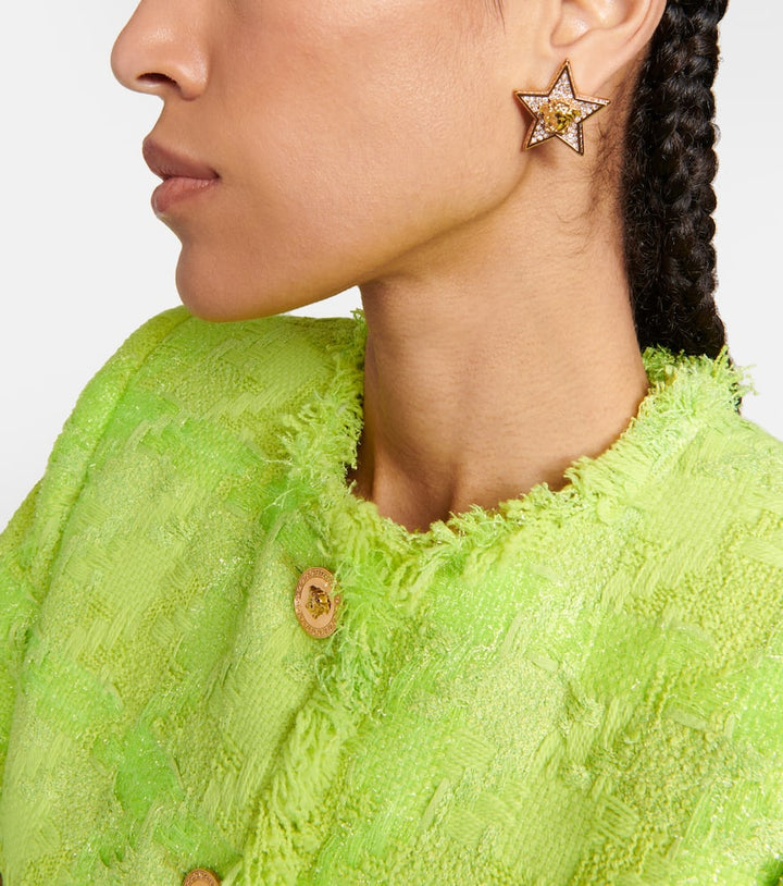 These Medusa embellished earrings by Versace are a bold and striking statement. Made in Italy from brass, these earrings feature the prominent Medusa logo design. The design is a celebration of a confident and fearless approach to style and is perfect for adding a touch of high-end drama to your look. They are a versatile staple that you will love for years to come.