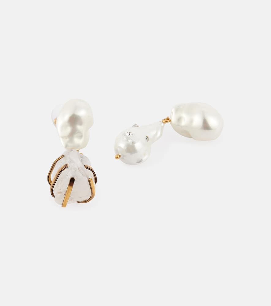 These Faux pearl drop earrings by Erdem are a magnificent and opulent statement. Made in Italy from crystal and faux pearl, these earrings are a breathtaking masterpiece, combining the beautiful luster of faux pearls with the brilliant sparkle of crystals. The design is a celebration of a sophisticated and graceful style and is perfect for adding a touch of high-end glamour to your look. They are a versatile staple that you will love for years to come.
