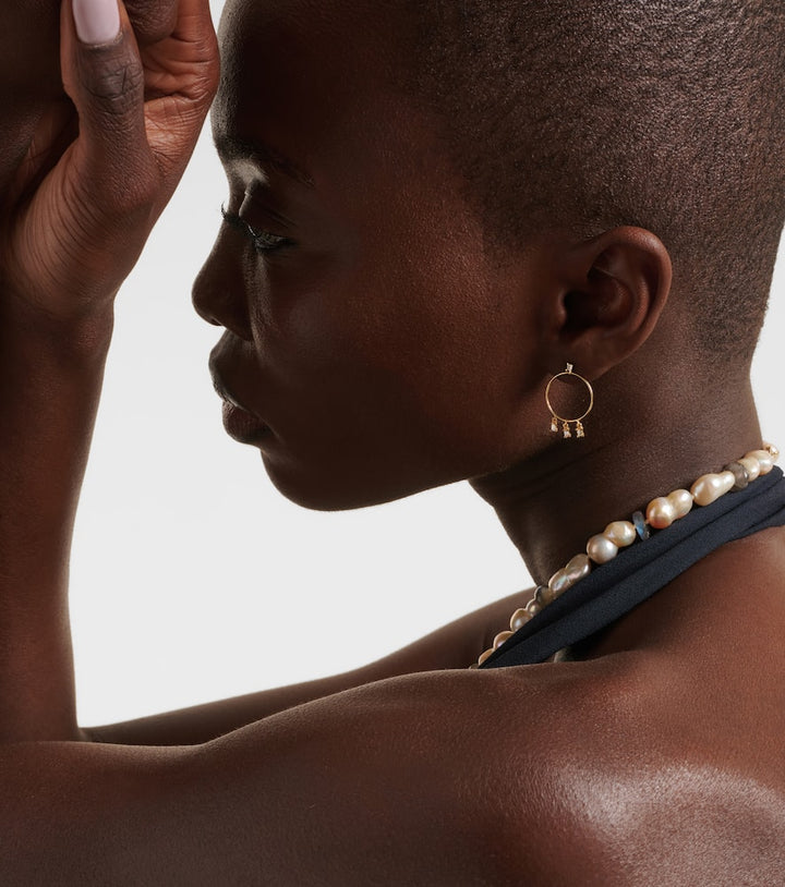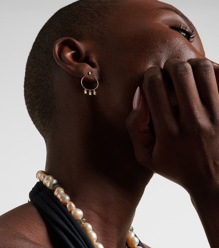 These 18kt yellow gold hoop earrings with diamonds by Ileana Makri are a magnificent and opulent statement. Made in Greece from 18kt yellow gold, these earrings are a breathtaking masterpiece, featuring a total carat weight of 0.41 of brilliant diamonds. The design is a celebration of a sophisticated and graceful style and is perfect for adding a touch of high-end glamour to your look. They are a versatile staple that you will love for years to come.