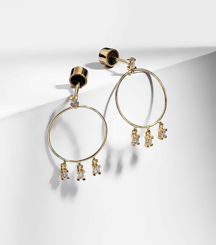 These earrings are made in Greece from 18kt yellow gold with a post-back fastening. They feature 0.41 carats of baguette-cut diamonds in a prong setting.