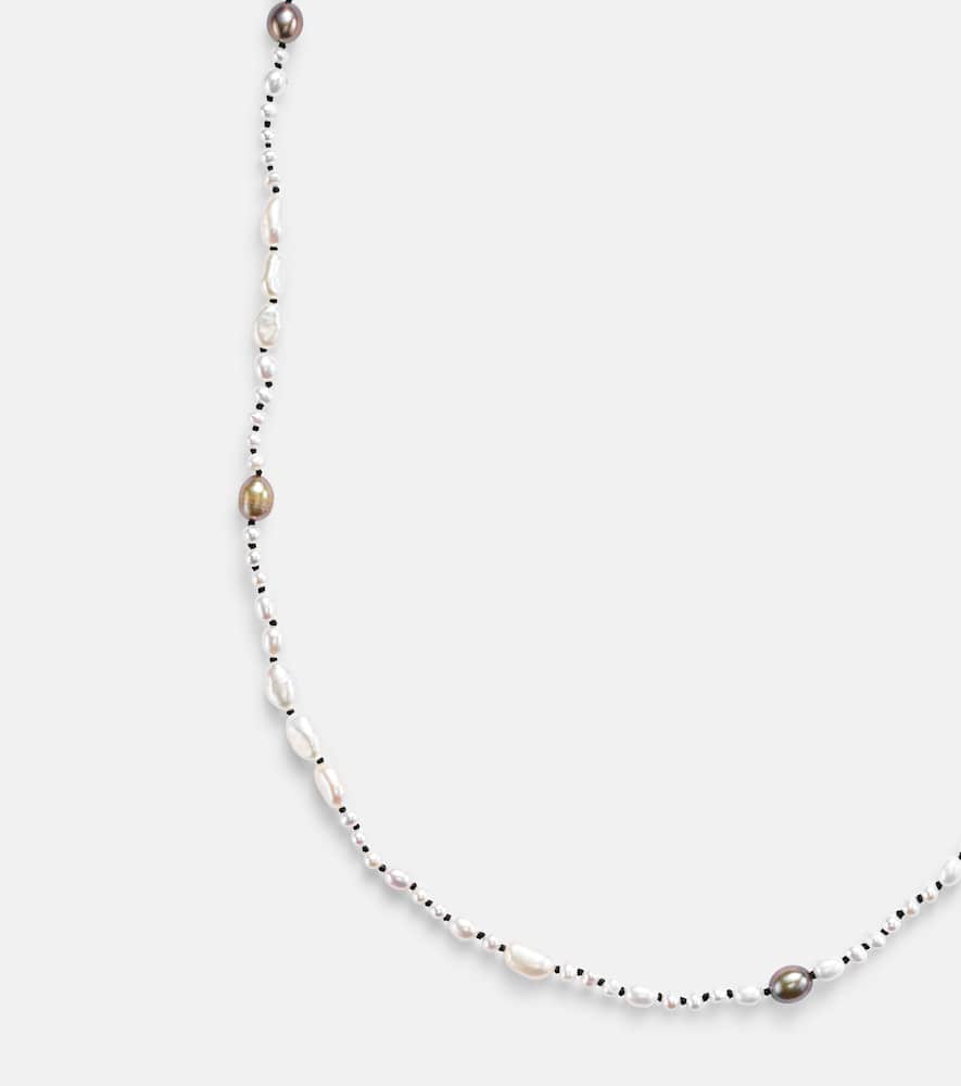 This necklace is made in the USA from 18kt gold-plated sterling silver. It features freshwater cultivated pearls and has a clasp fastening.