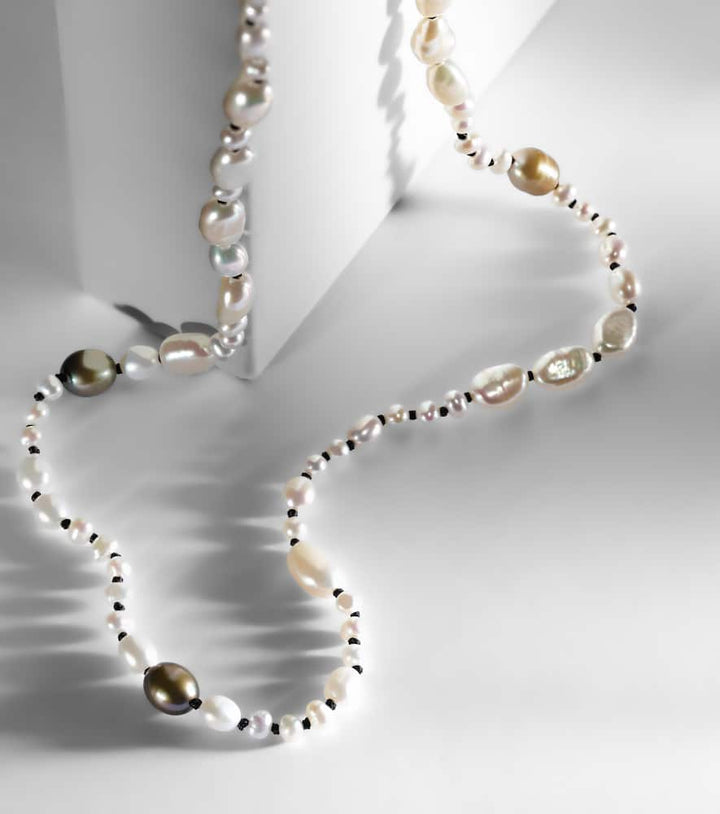 Mermaid necklace with freshwater pearls and 18kt gold-plated silver beads