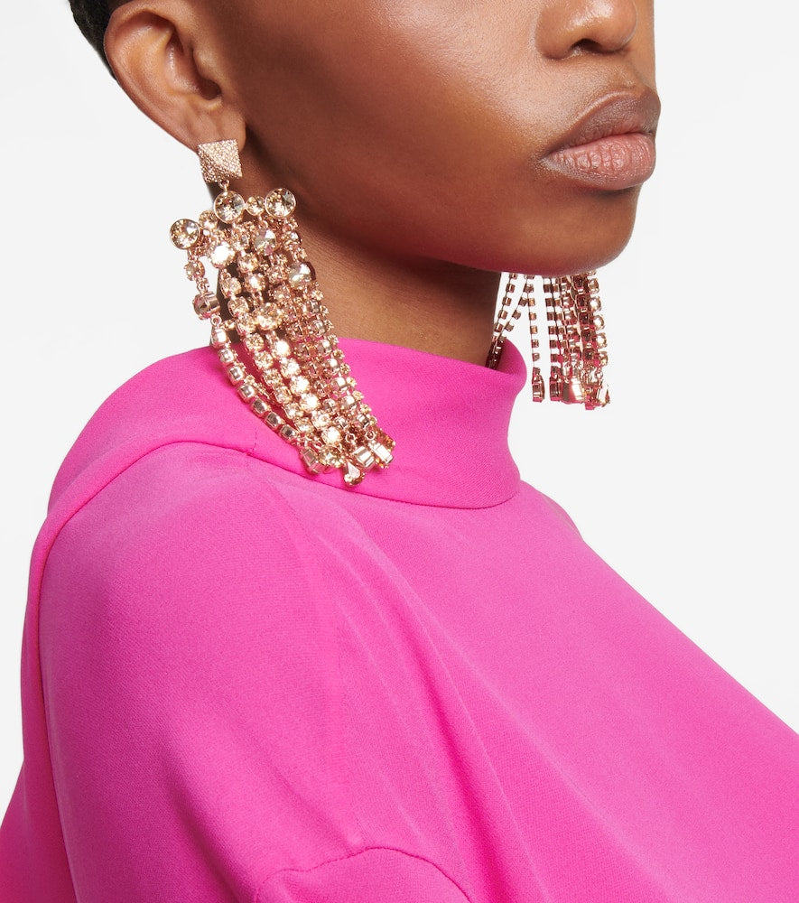 These Rockstud crystal-embellished earrings by Valentino are a bold and striking statement. Made in Italy from brass, these earrings feature the prominent Rockstud design with shimmering crystals. The design is a celebration of a confident and fearless approach to style and is perfect for adding a touch of high-end drama to your look. They are a versatile staple that you will love for years to come.